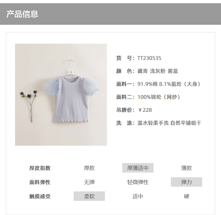 【马克珍妮 芦芙】夏装新款 女童弹力针织短袖T恤230535
