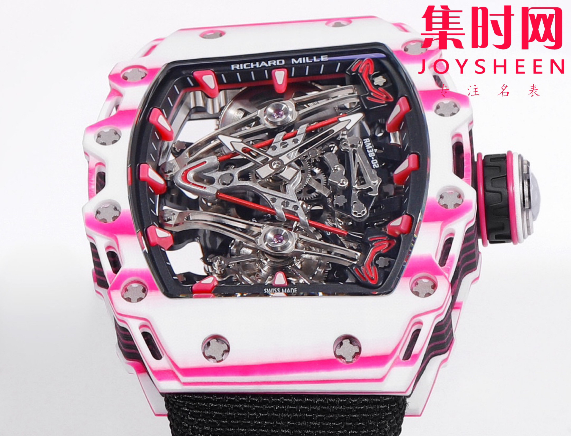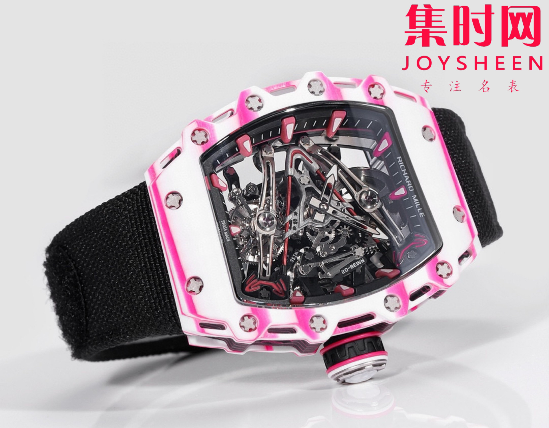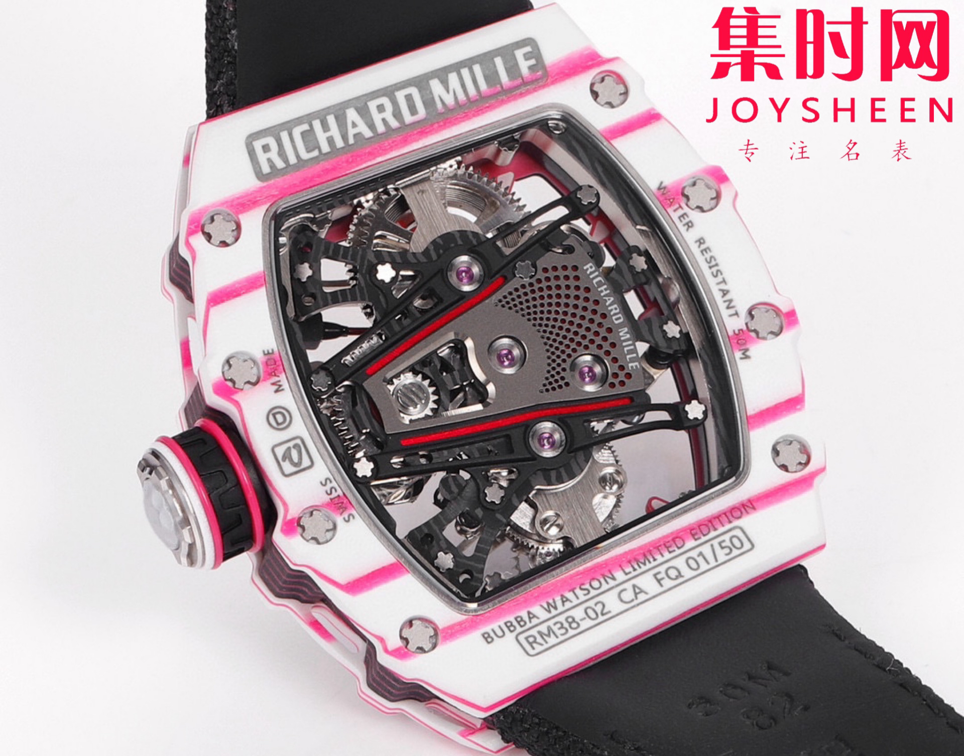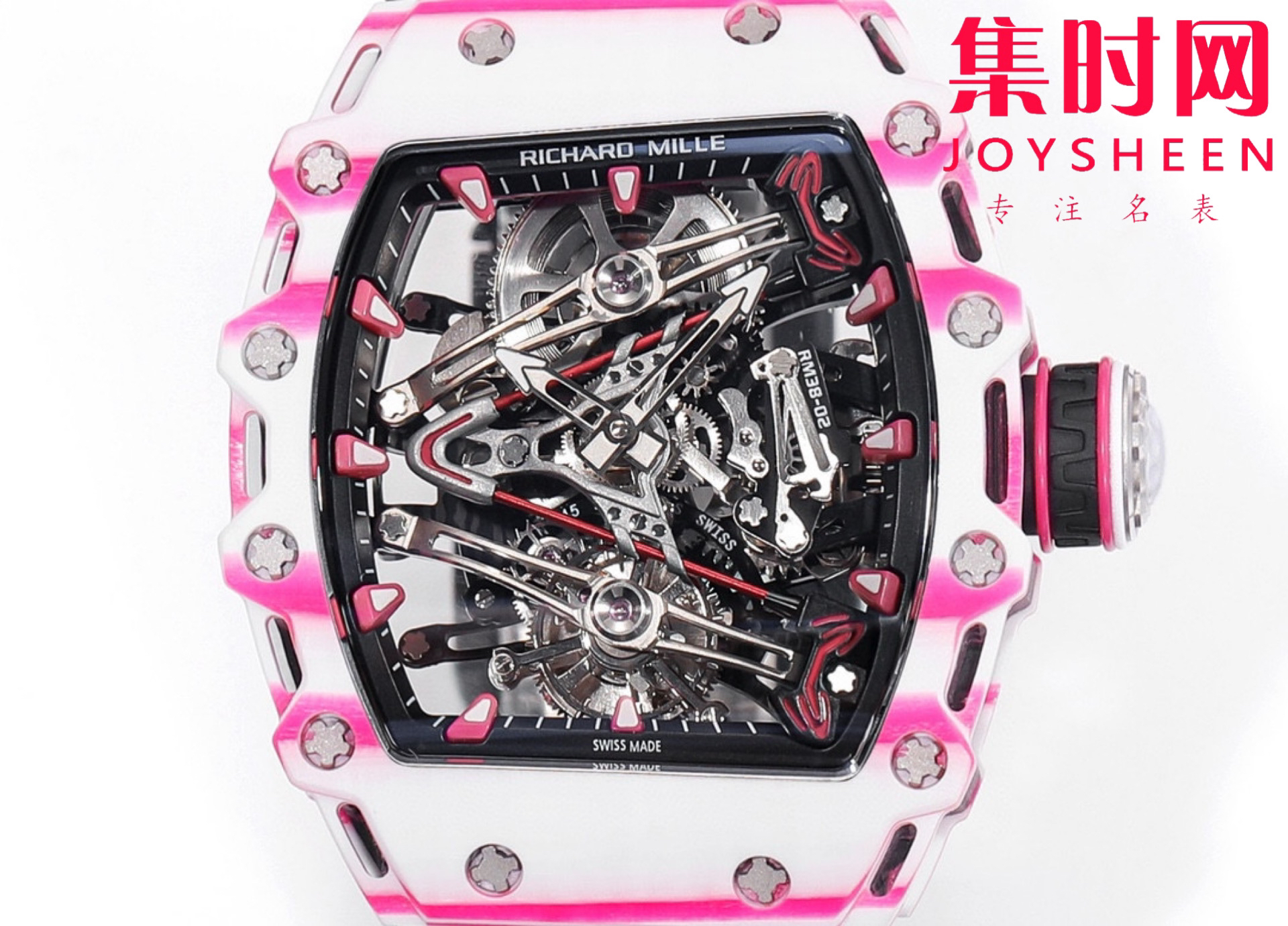 风格醒目的新作——「RM 38-02 Tourbillon Bubba Watson」陀飞轮腕表与高尔夫职业球手 Bubba Watson 合作设计,独特的粉红色来自这位高尔夫名将钟爱的 PING 一号球杆,风格尤为明快,让人心生愉悦。