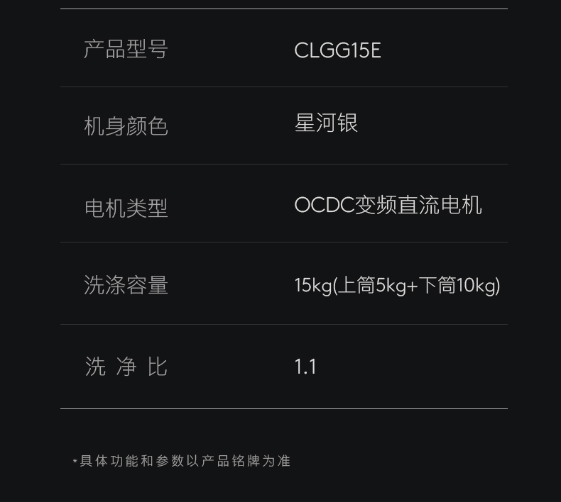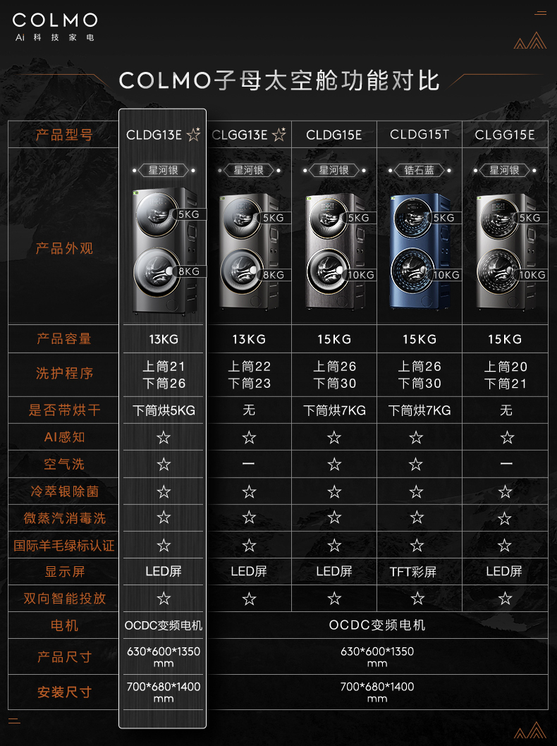 COLMO 太空舱系列家用母婴全自动智能投放滚筒 15KG大容量双筒变频洗衣机 CLGG15E 子母分舱洗衣机