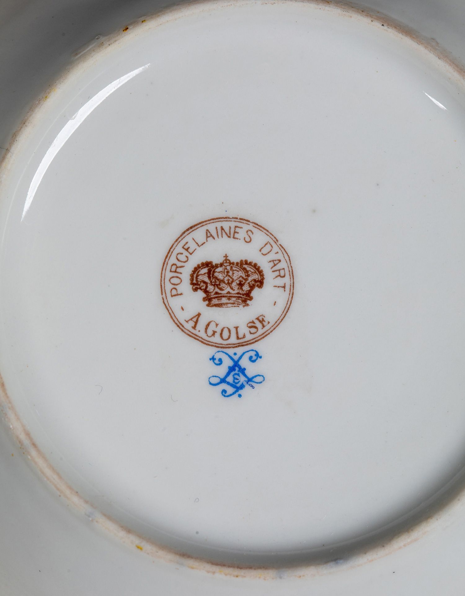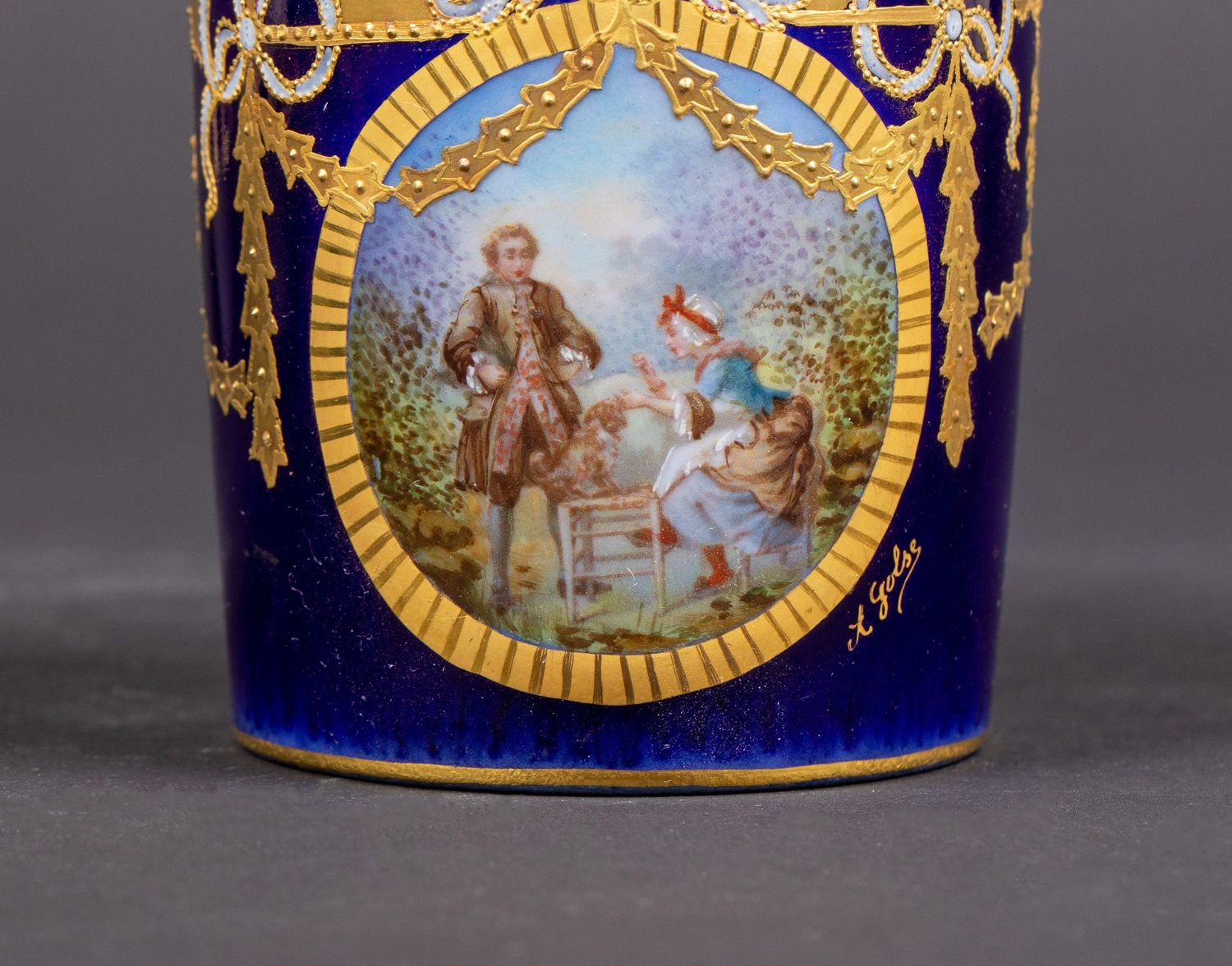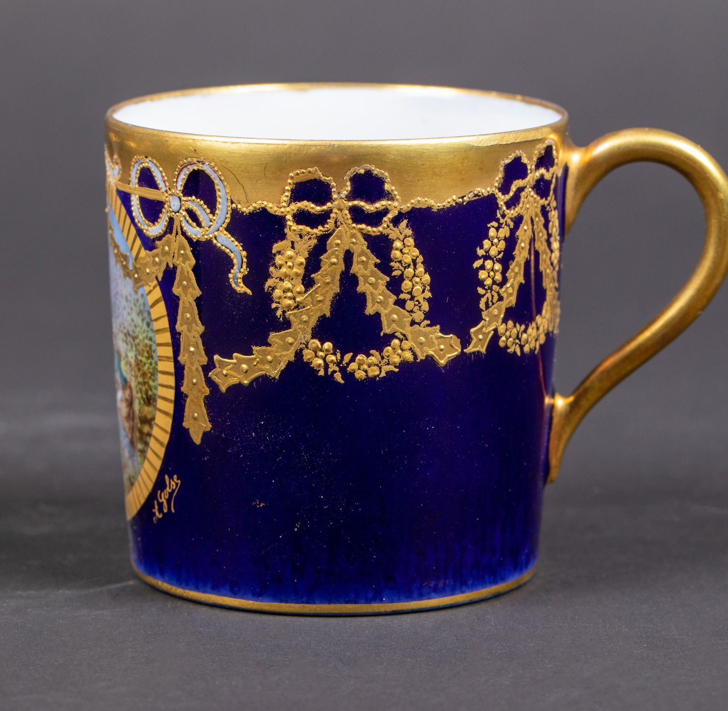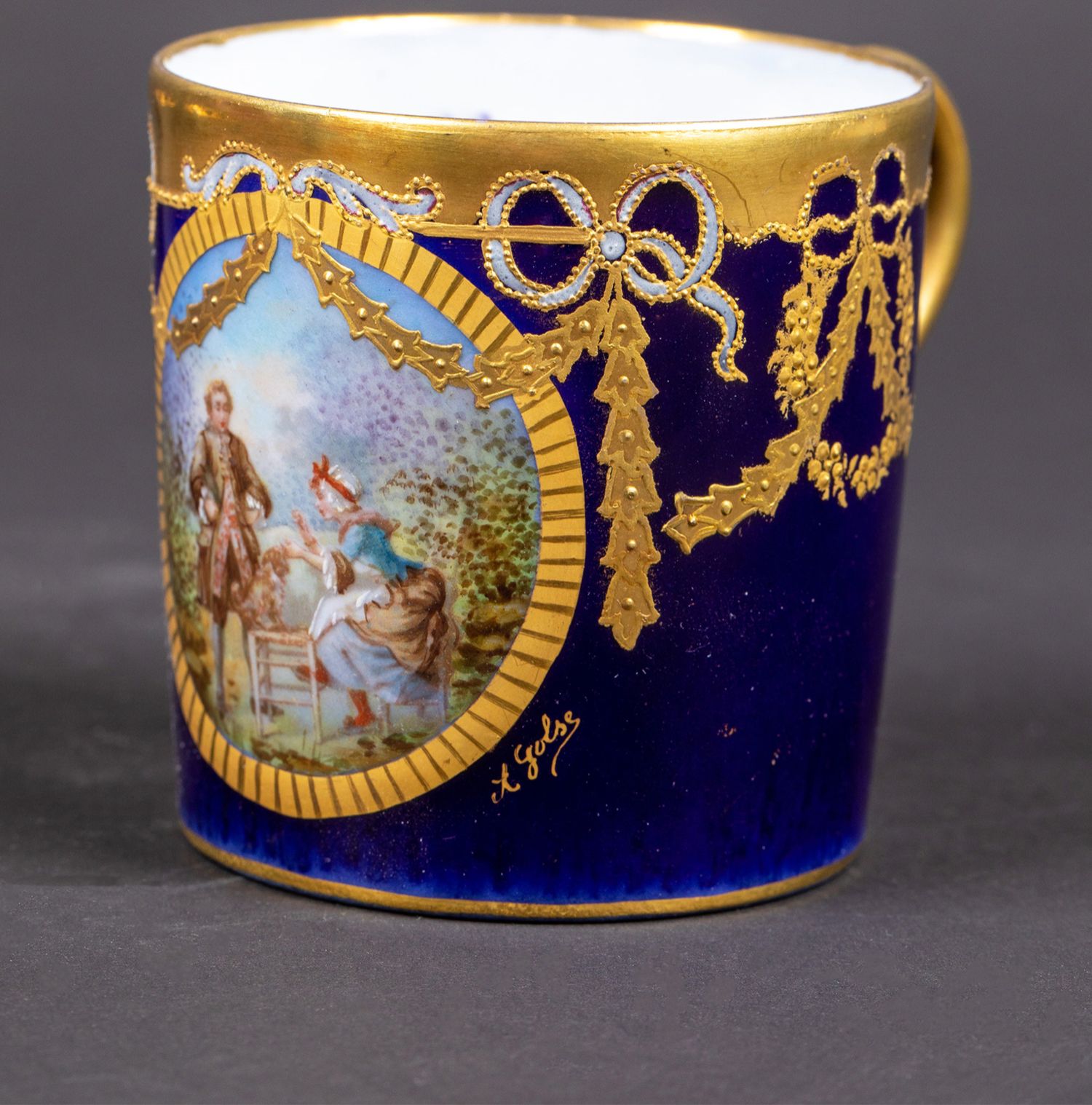 独角鹿西洋古董法国描金蓝釉浮雕珐琅手绘花卉瓷器杯碟双人套装