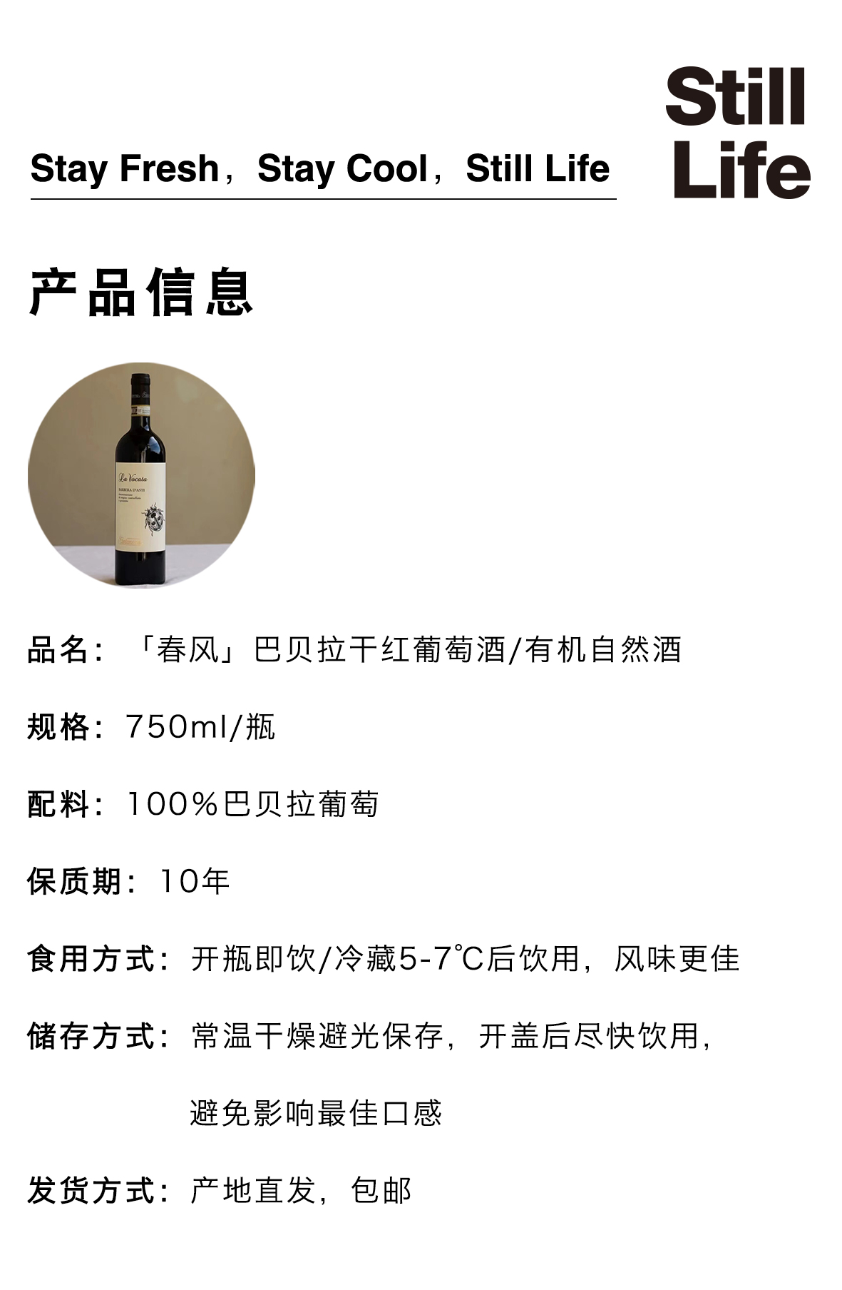 「春风」巴贝拉干红葡萄酒/有机自然酒750ml|意大利【Y】
