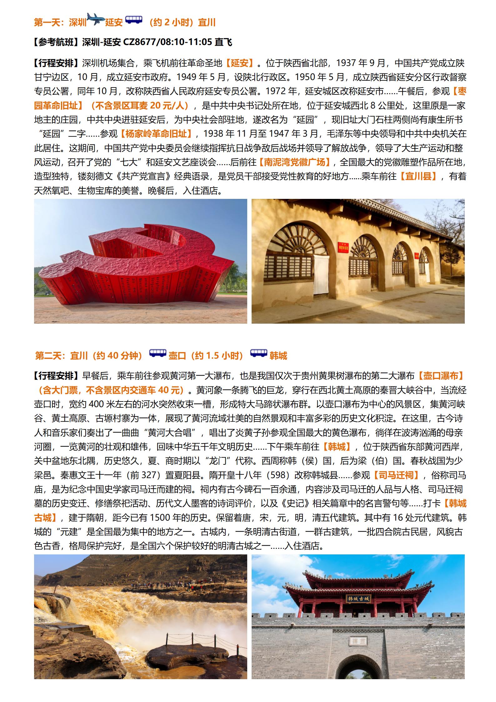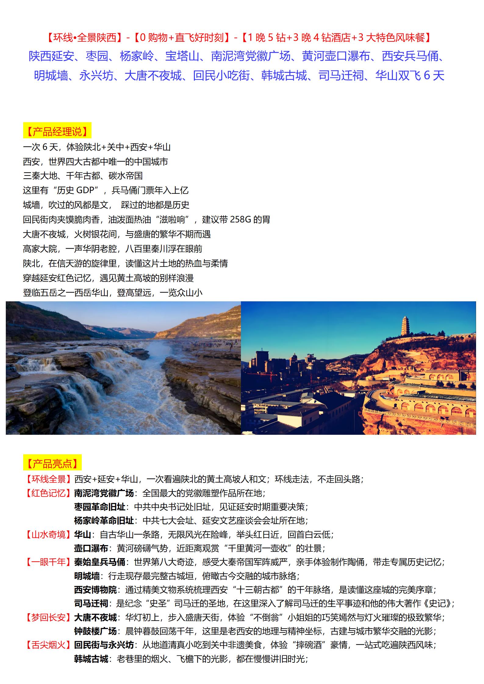 【五一】<陕西西安+延安+华山+壶口瀑布双飞6天全景游(环线走法,不走回头路)>枣园、杨家岭、宝塔山、南泥湾党徽广场、兵马俑、明城墙、永兴坊、大唐不夜城、回民小吃街、韩城古城、司马迁祠