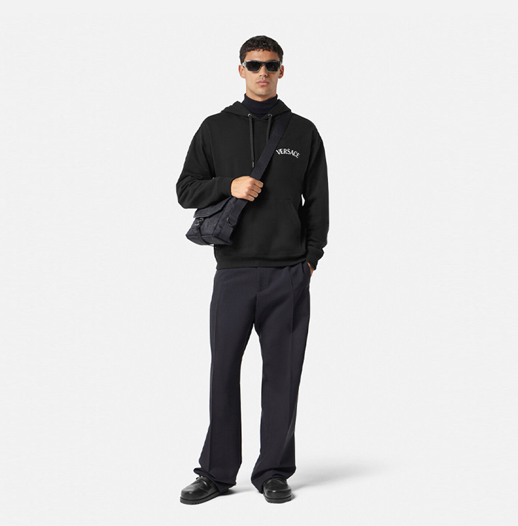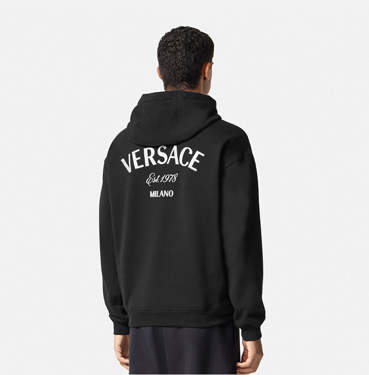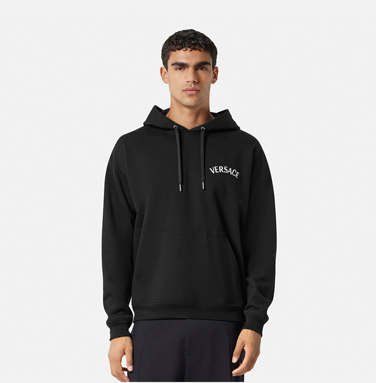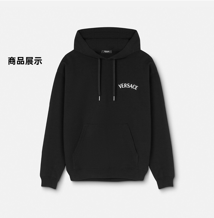 VERSACE 范思哲 男士字母刺绣徽标棉质连帽卫衣 黑色 1013979 1A09923 1B000
