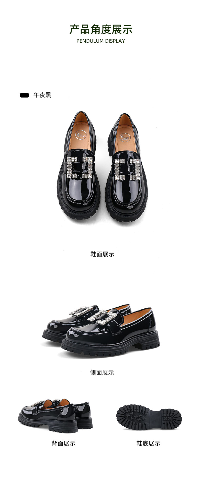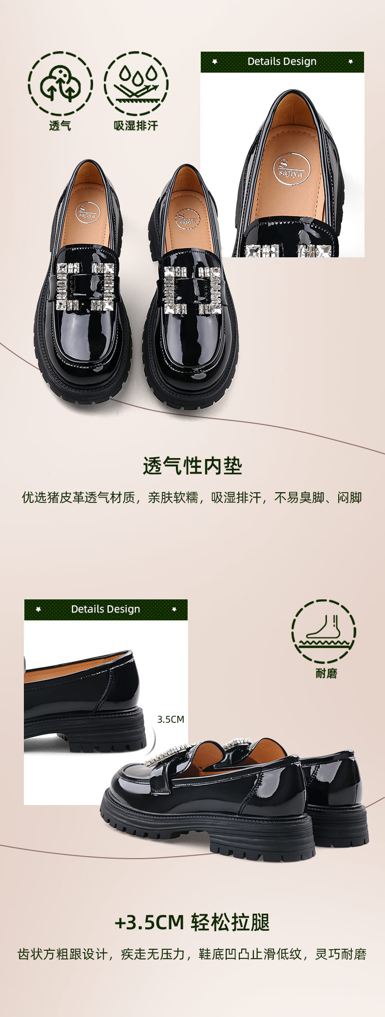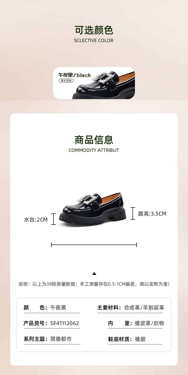 Safiya/索菲娅2024春季新品设计感英伦风水钻扣漆皮粗跟厚底乐福鞋 SF41112062