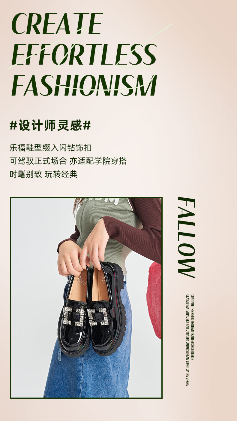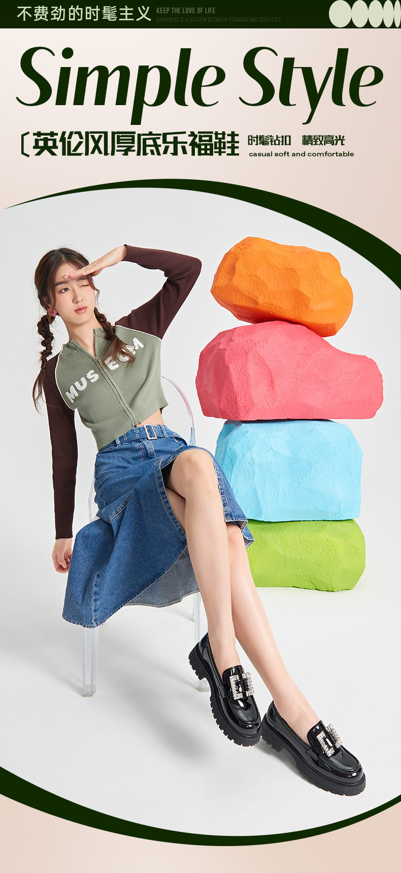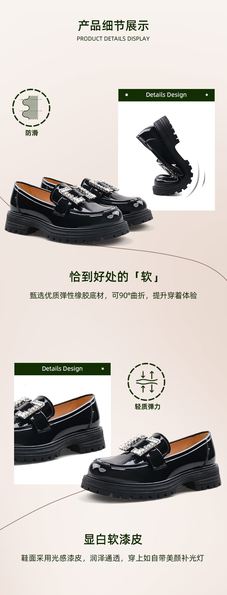 Safiya/索菲娅2024春季新品设计感英伦风水钻扣漆皮粗跟厚底乐福鞋 SF41112062