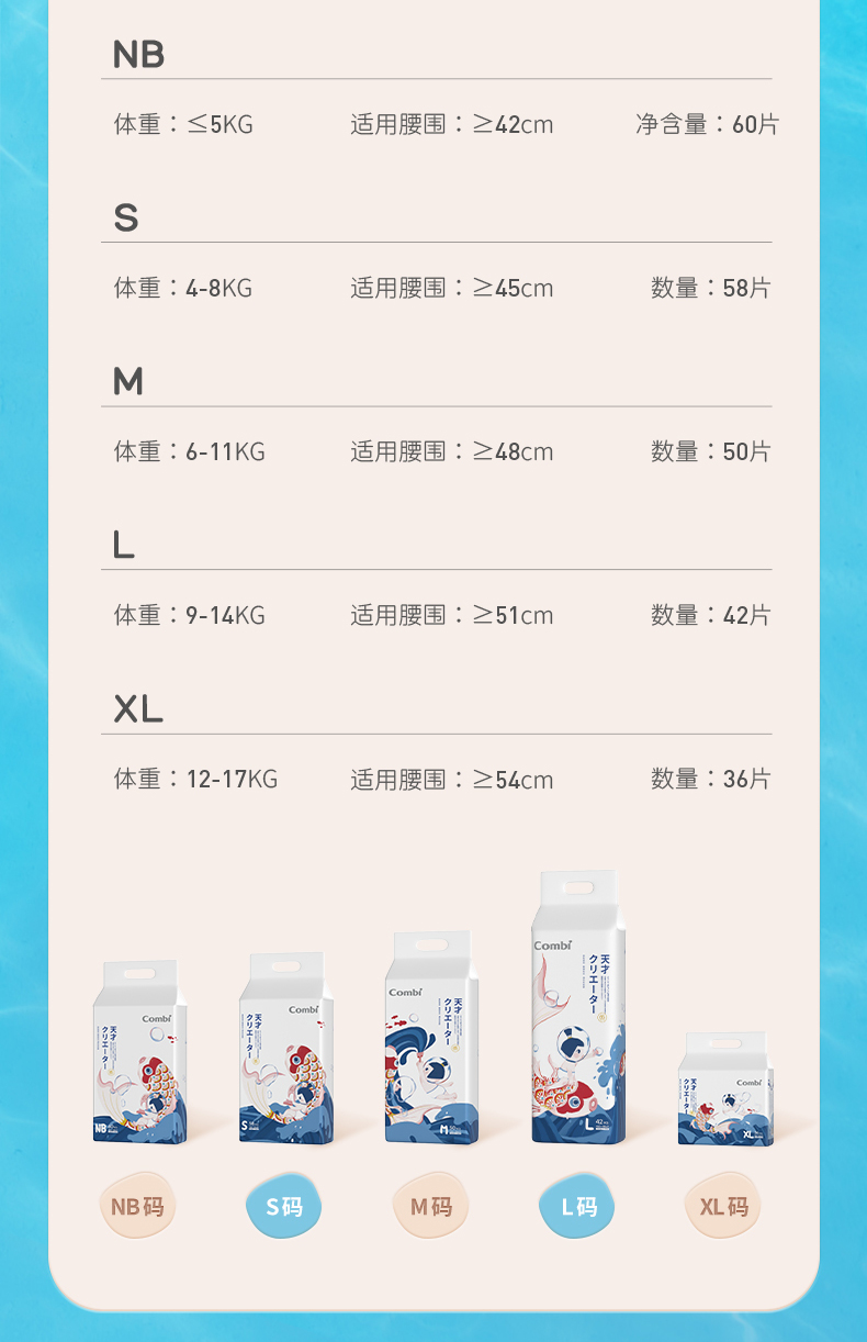 Combi日本康贝天才海之子(纸尿裤)弱酸轻薄透气尿不湿