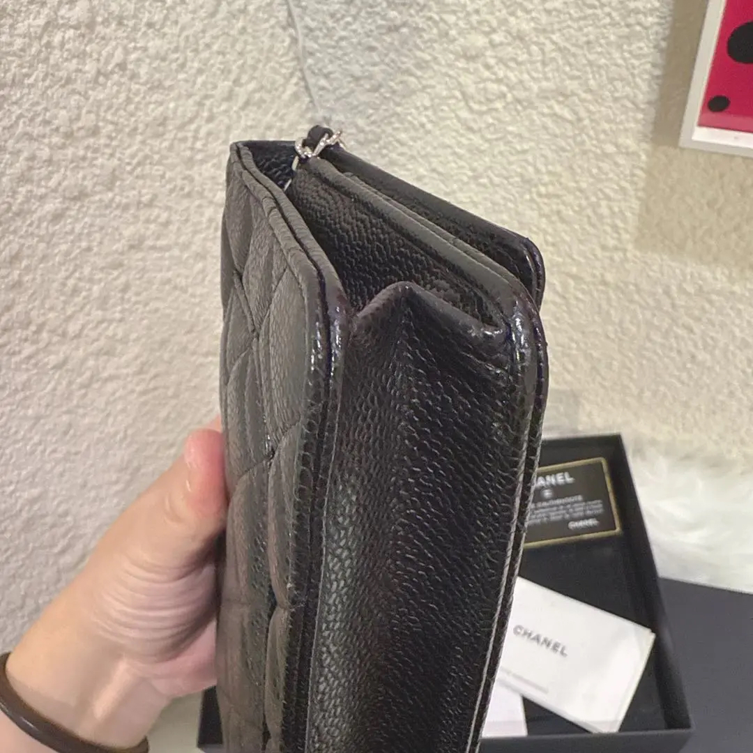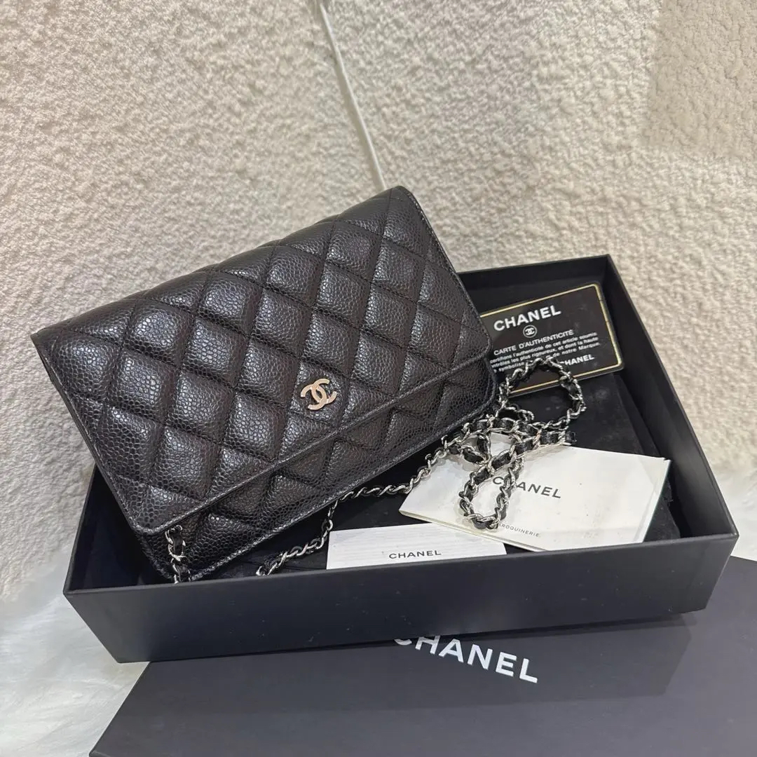【商品详情】正品二手 Chanel woc 黑银 荔枝纹牛皮 斜挎包🤑97新 19*12 镭射28开 配件:卡 说明书 防尘袋 盒子。经典发财包