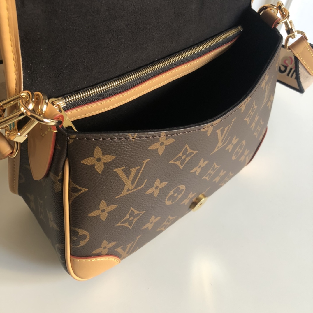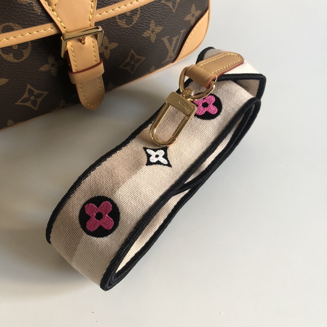老花面料搭配深色树膏皮!配有一根皮肩带(可腋下背)一根刺绣肩带(可肩背斜跨)都可以拆卸