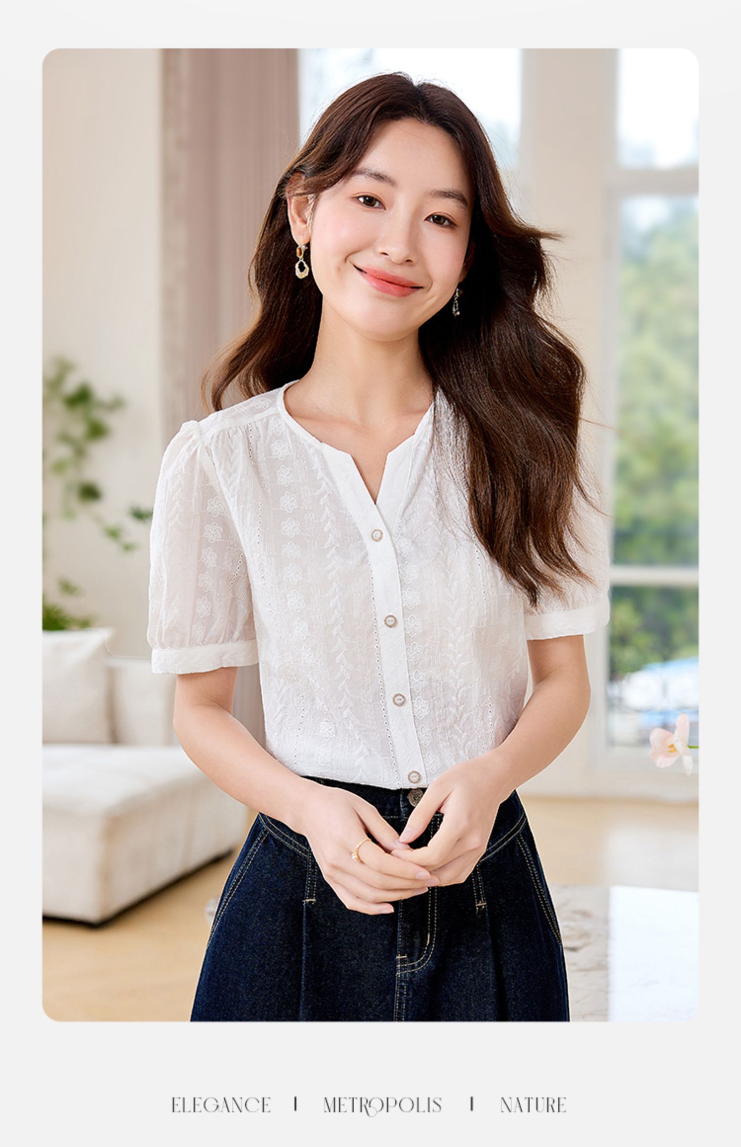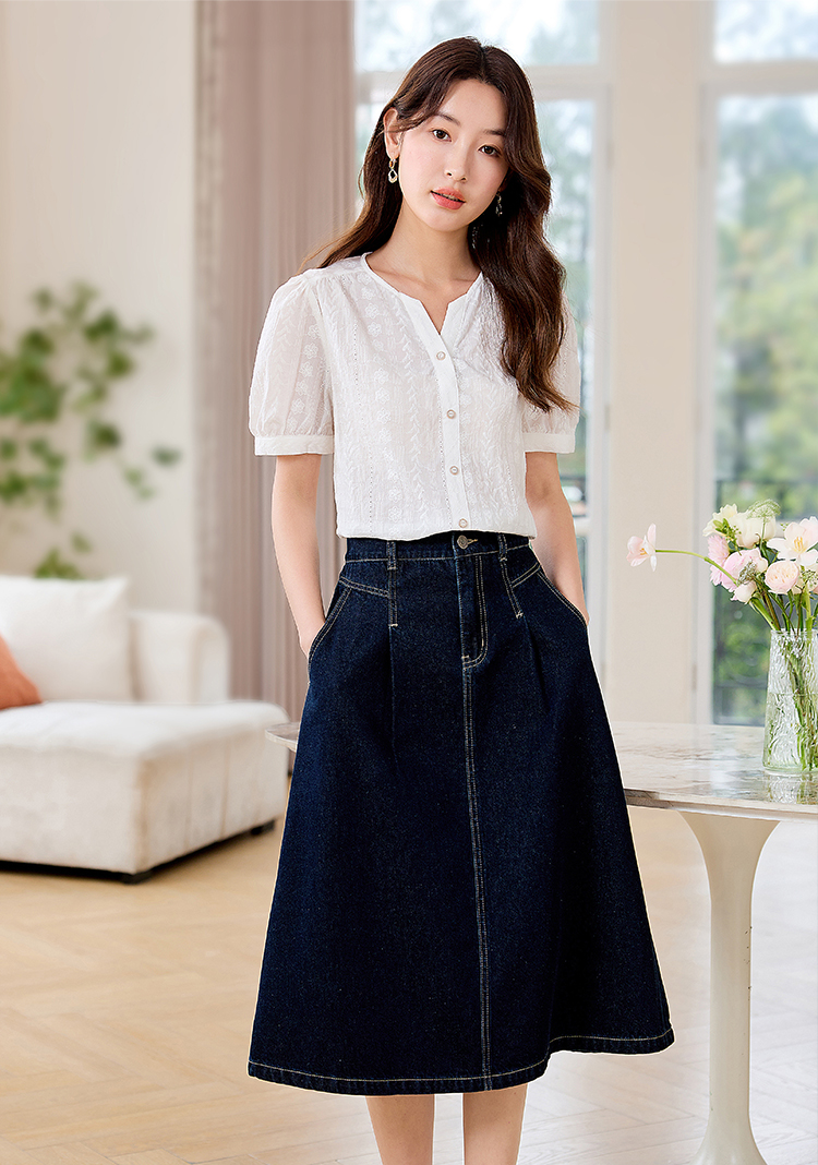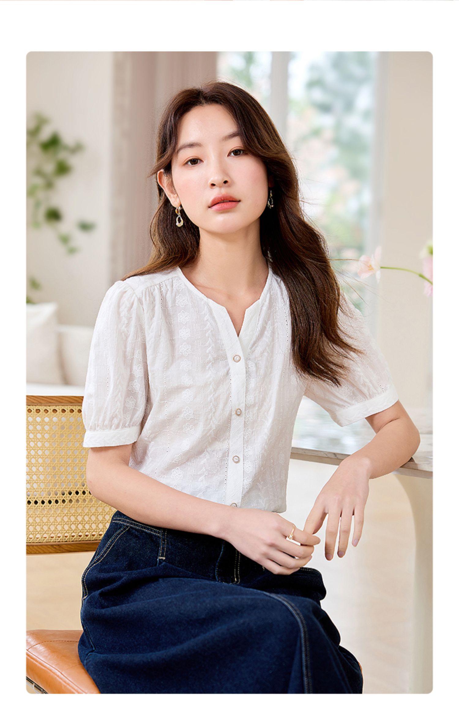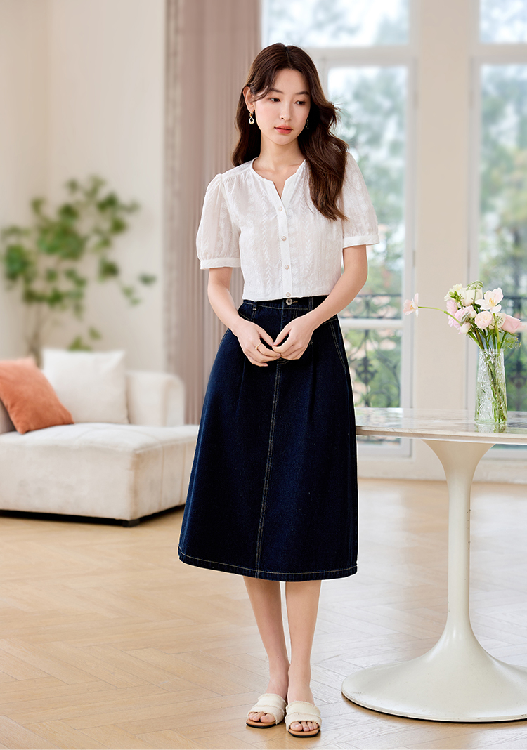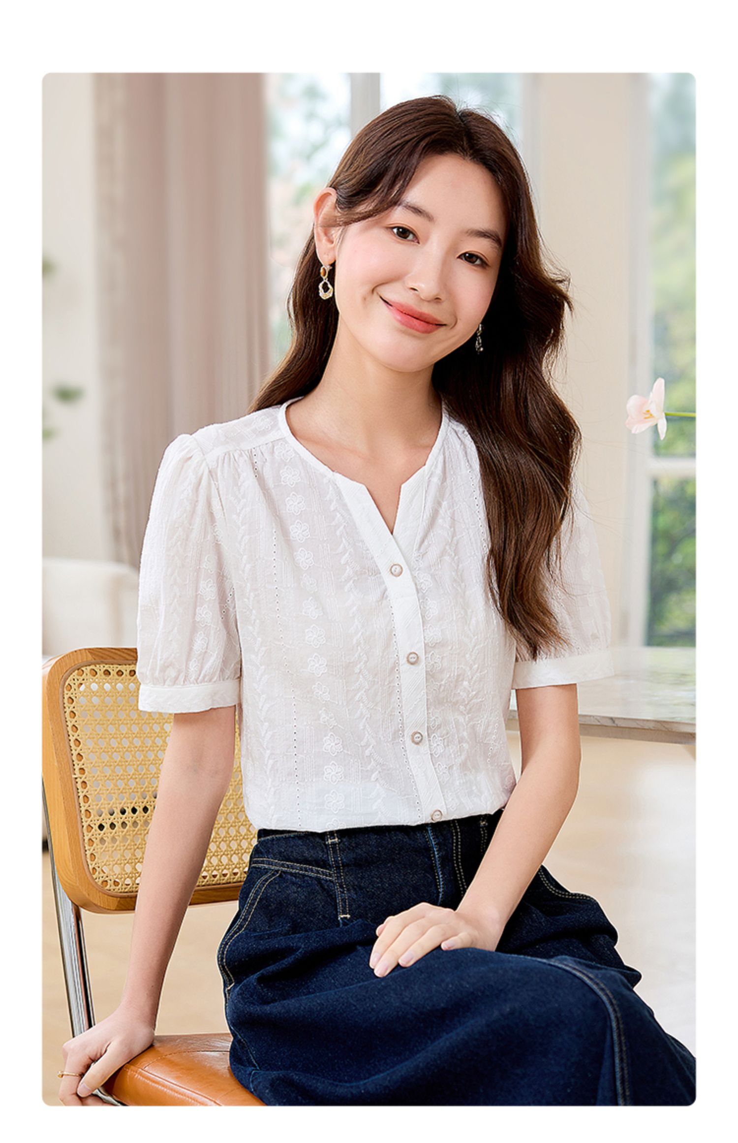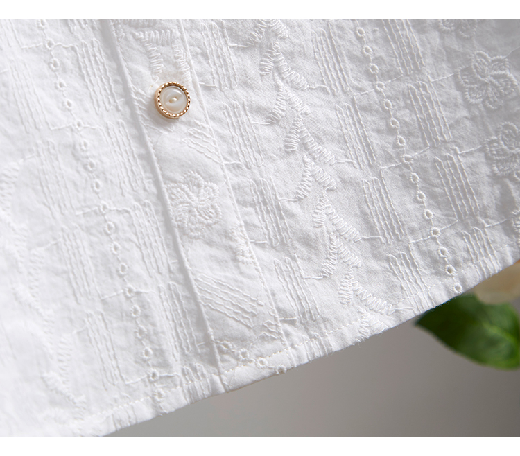 【专属好价】熙世界法式白衬衫短袖2025夏装新款气质刺绣衬衣泡泡袖纯棉上衣