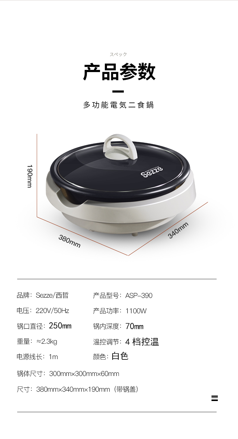 日本sezze西哲 鸳鸯电火锅家用多功能电热锅 1100W