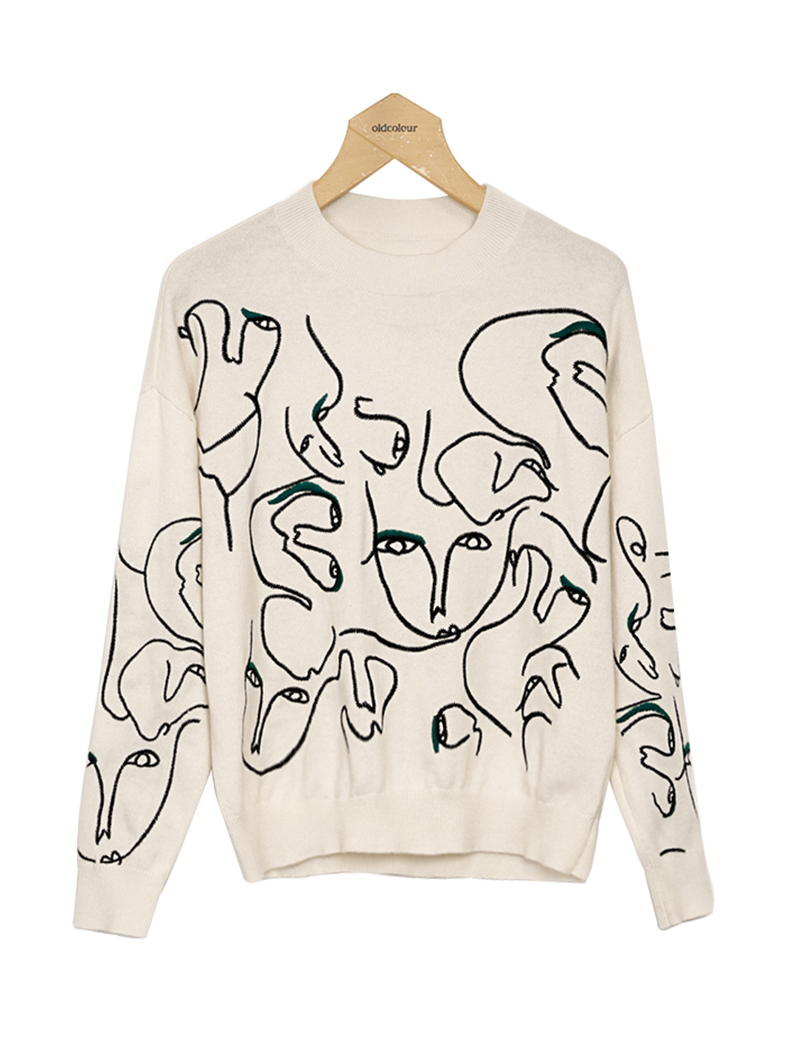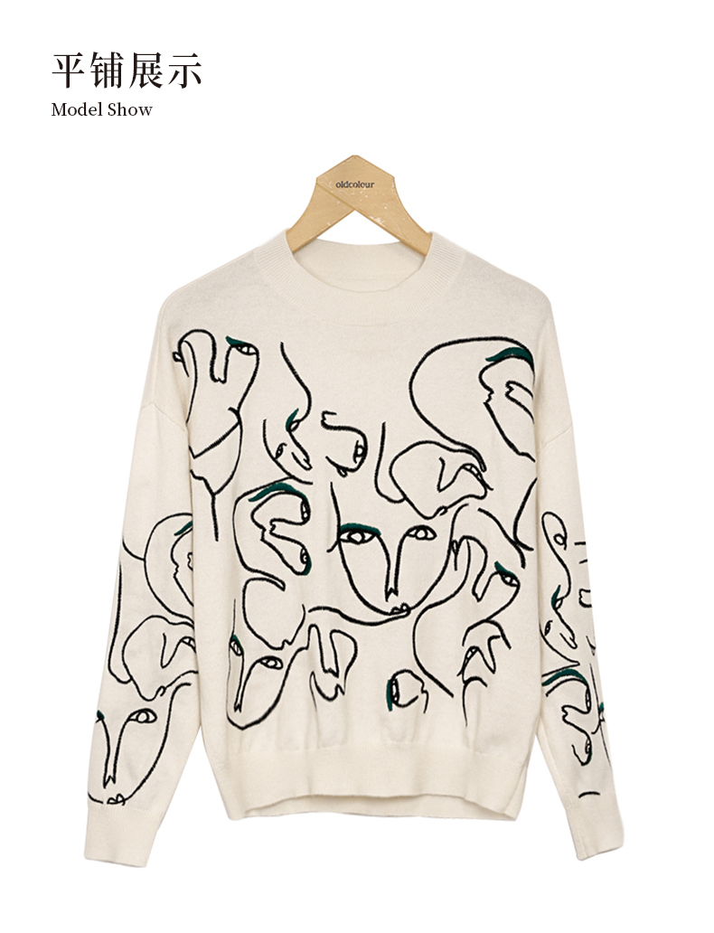 oldcolour白色针织衫春季新款圆领设计感宽松毛衣打底女P11052406