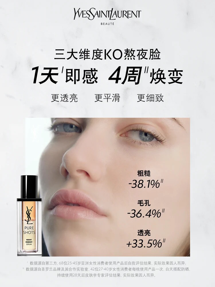YSL圣罗兰夜皇后精华 透亮平滑细致毛孔熬夜肌修护-会员6折