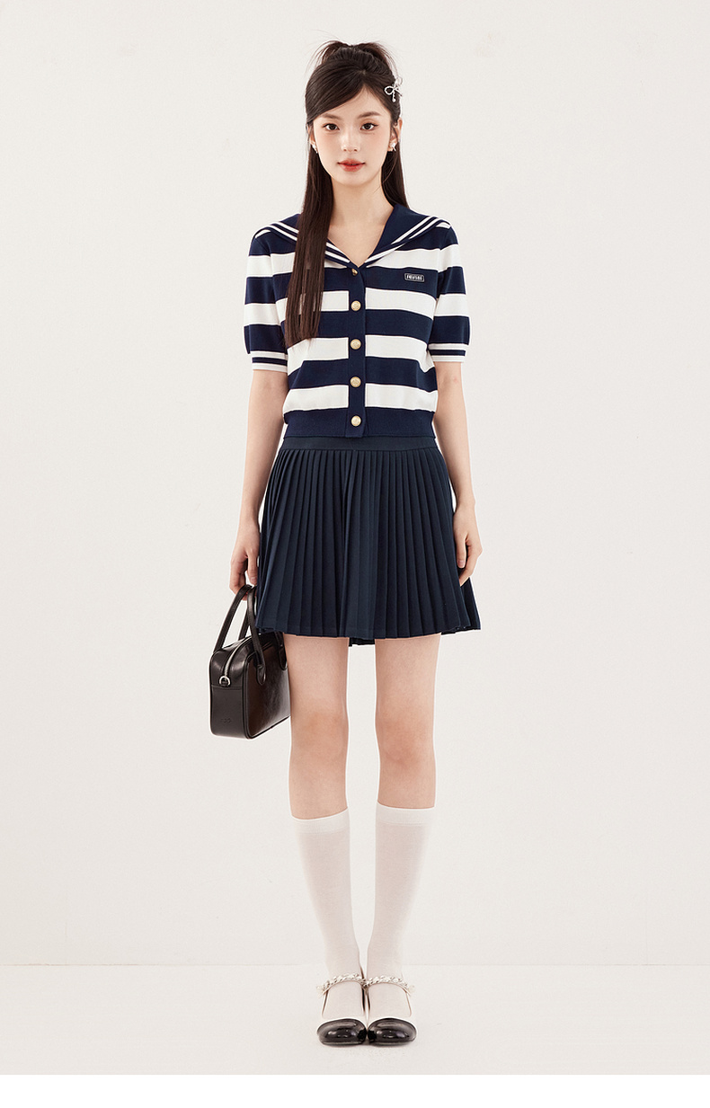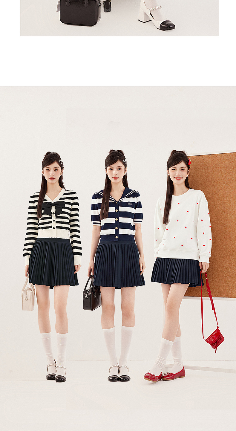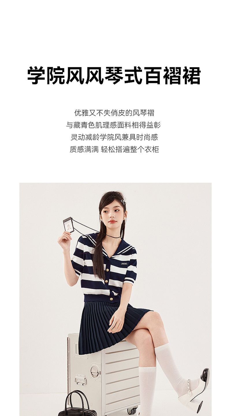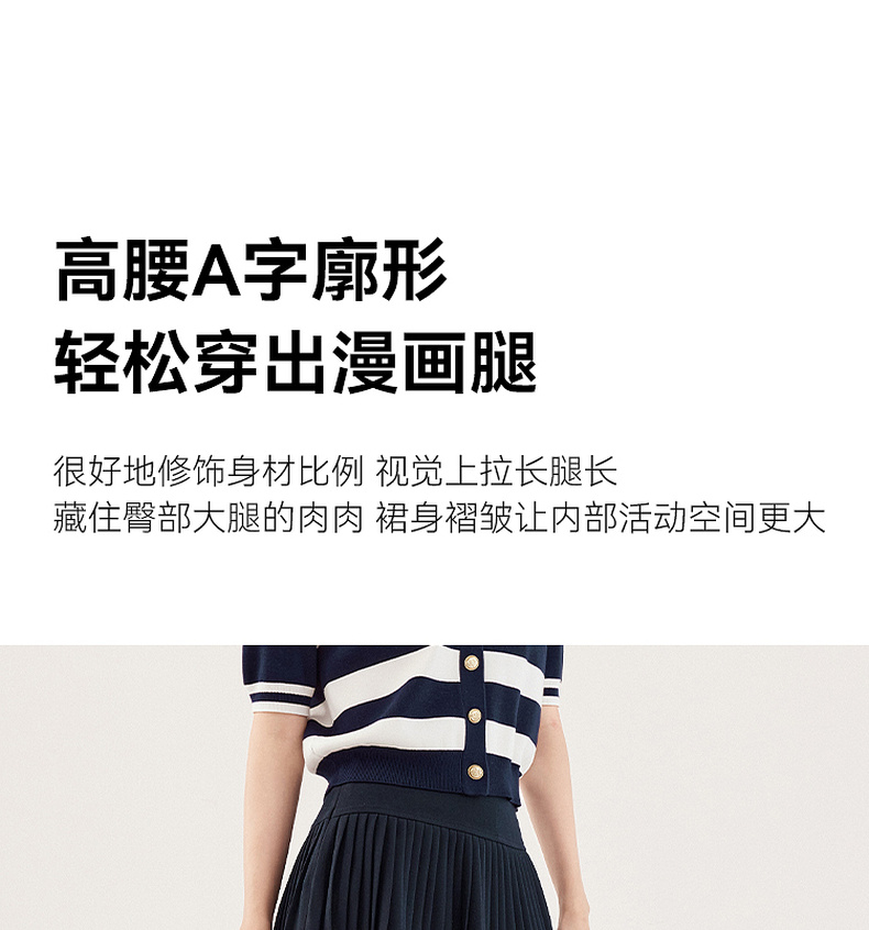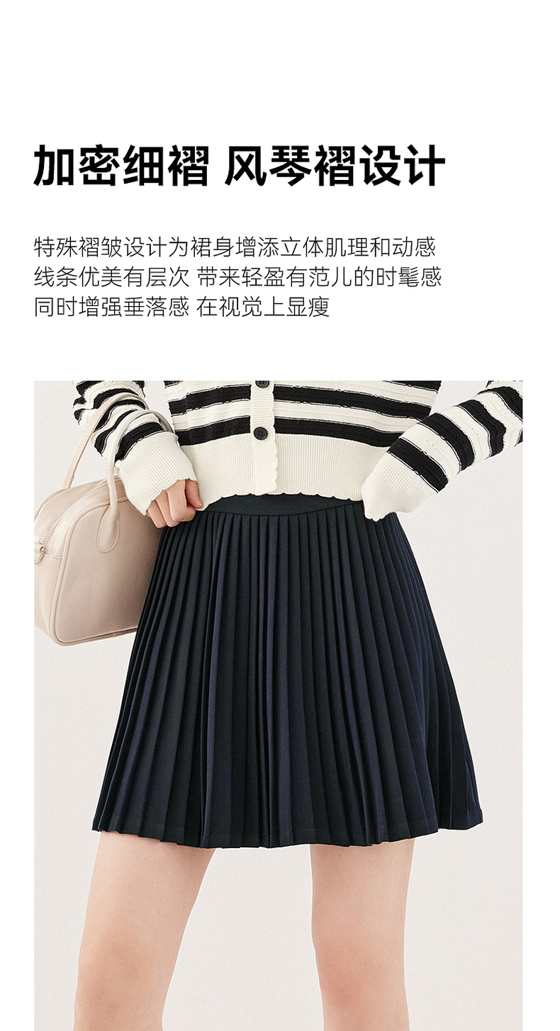【严选】诗凡黎学院风高腰风琴式百褶短裙2024秋新款小个子甜酷风百搭裙子7F7340061