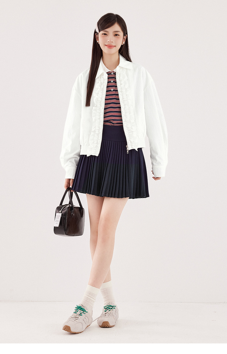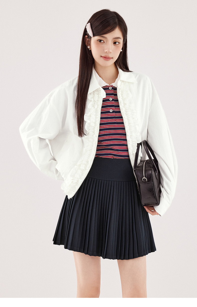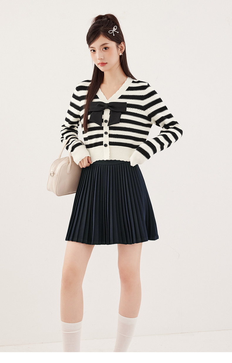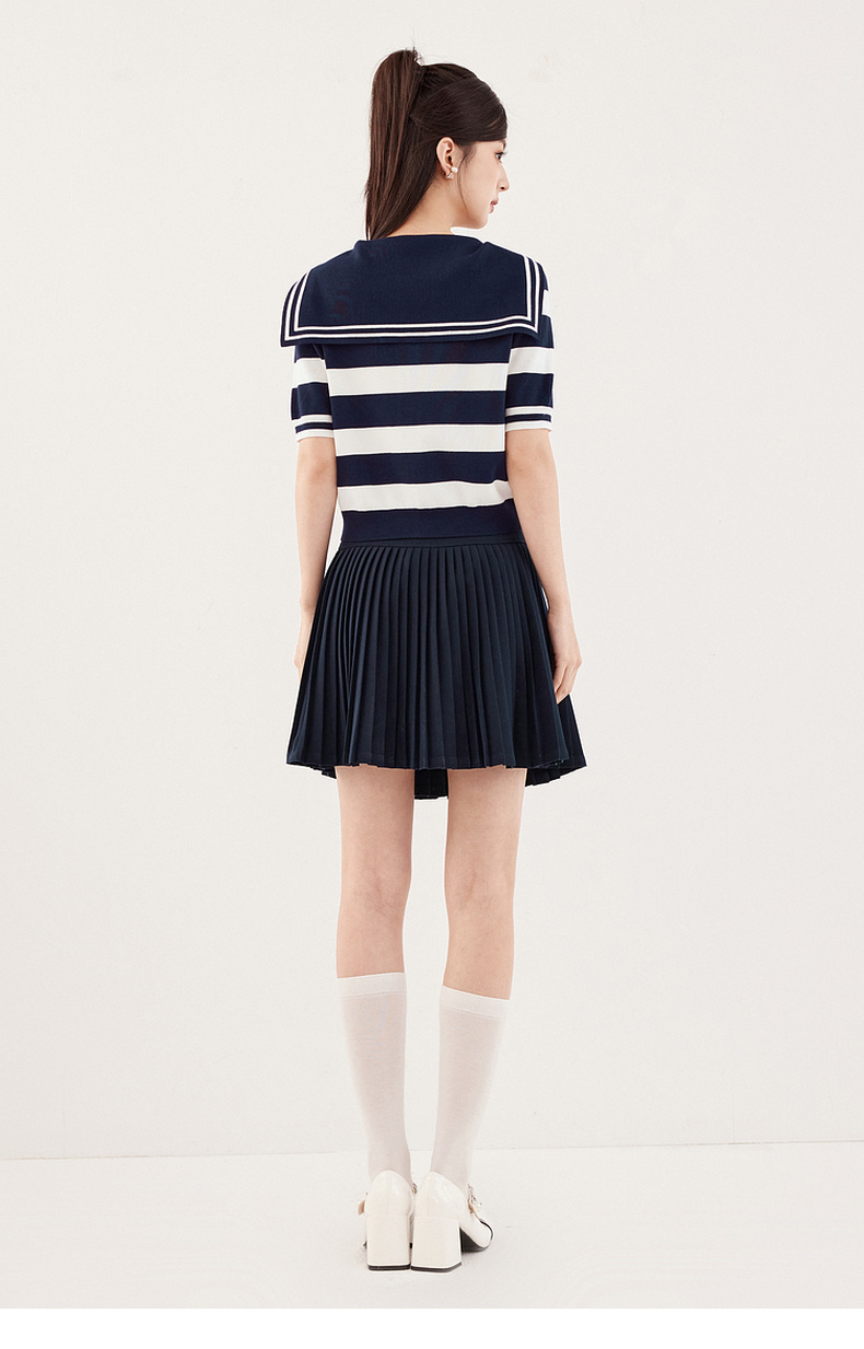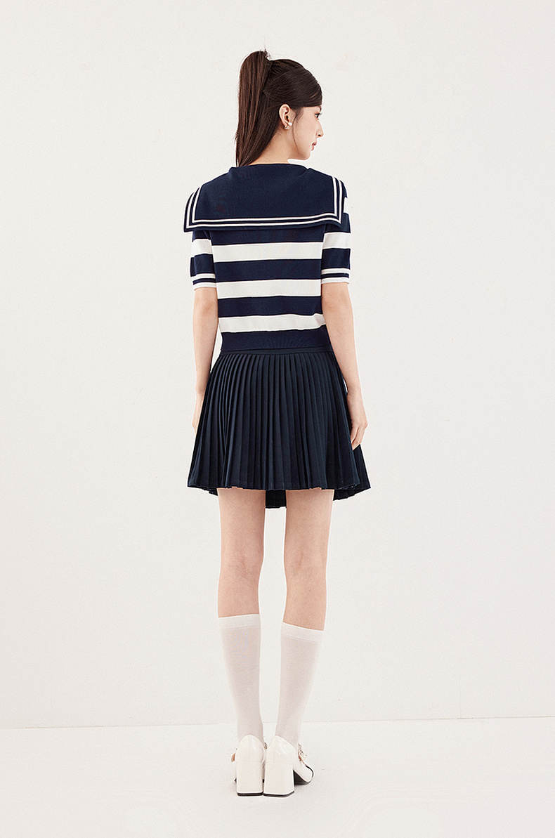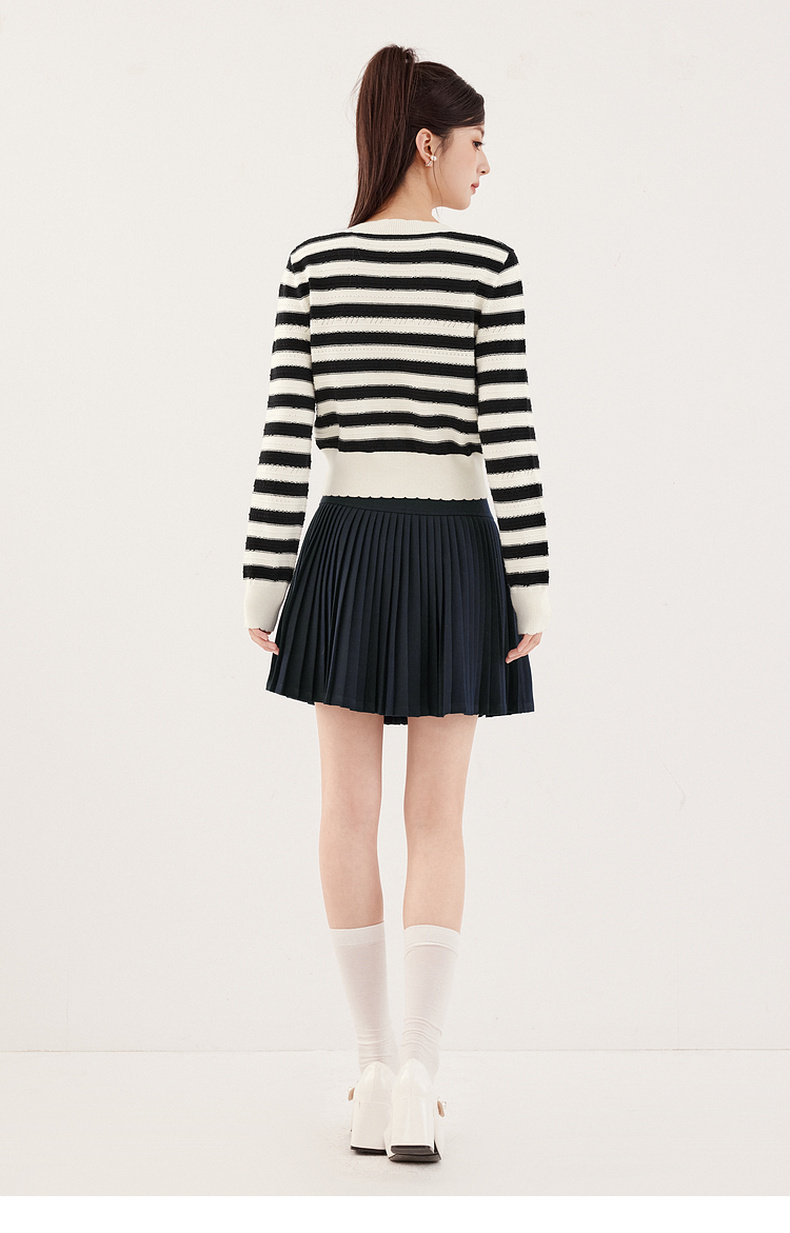 【严选】诗凡黎学院风高腰风琴式百褶短裙2024秋新款小个子甜酷风百搭裙子7F7340061