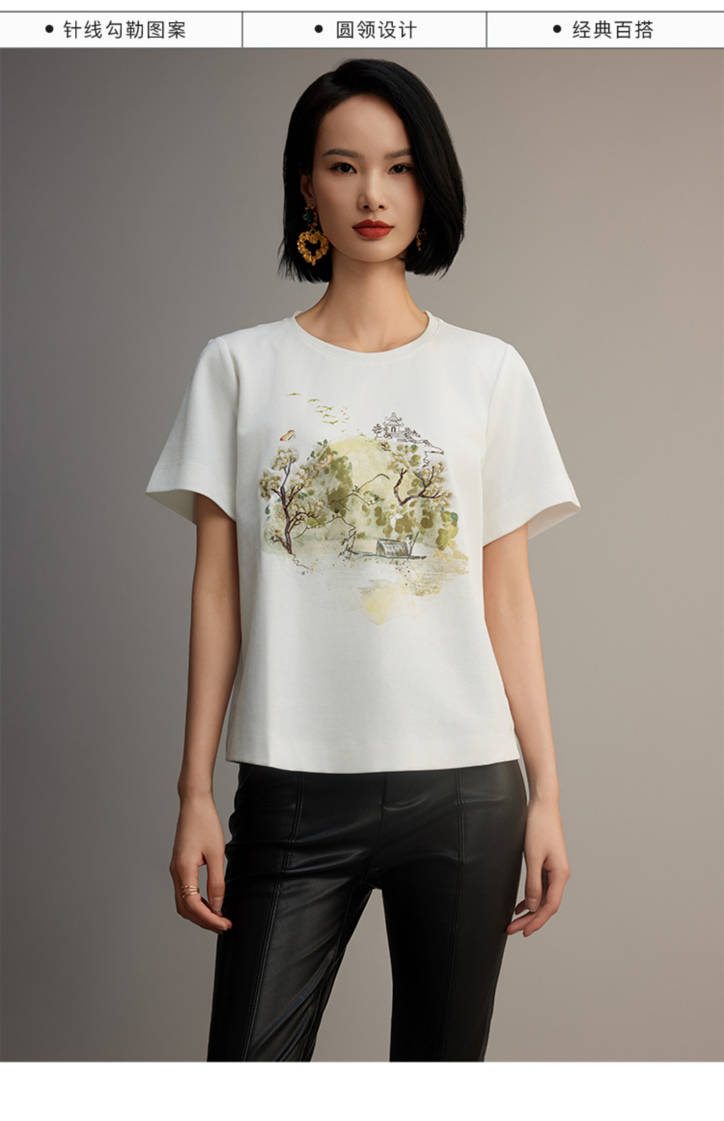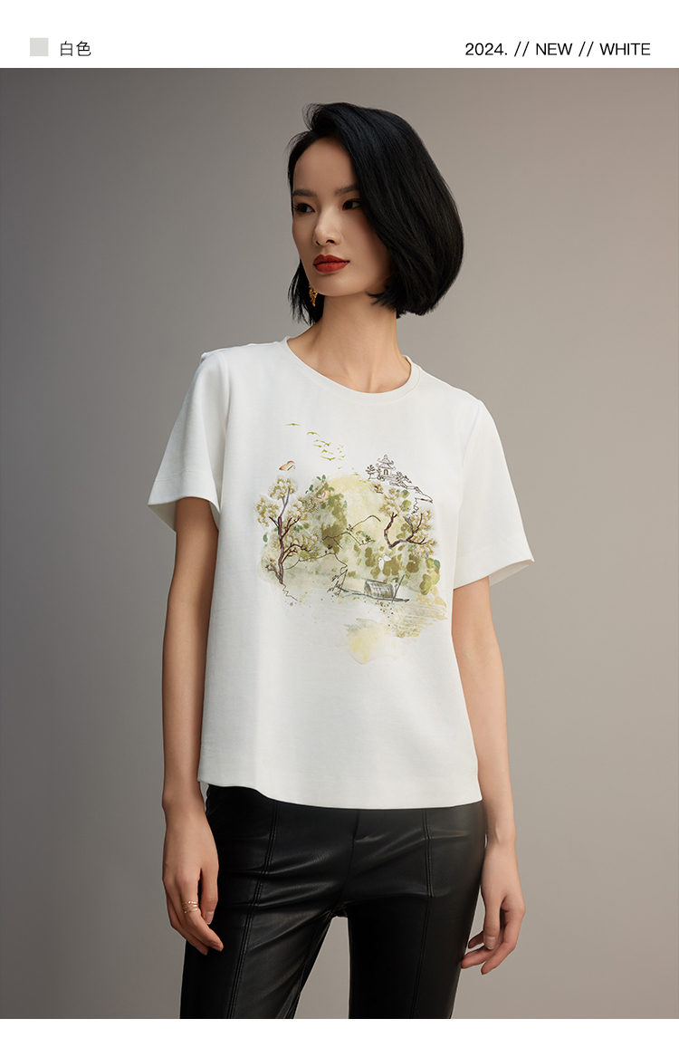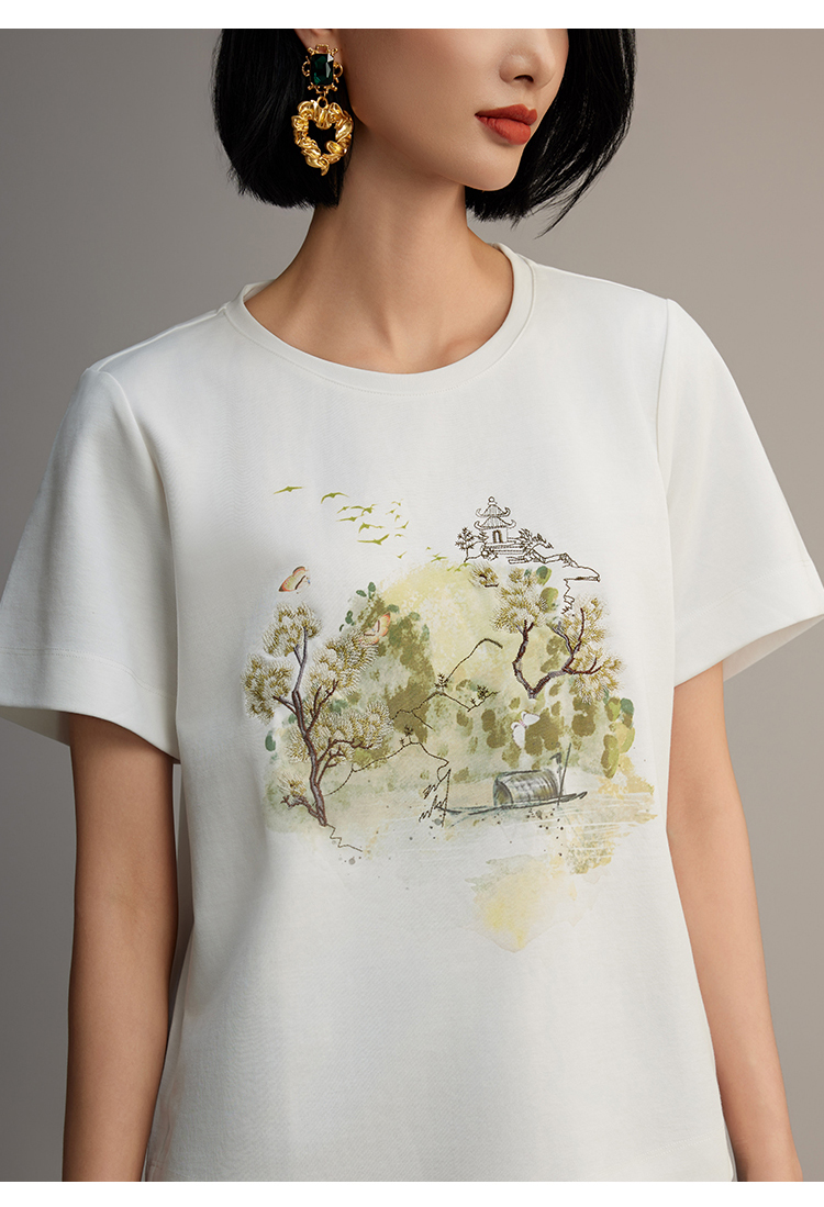 R.S.G精品系列新款夏季宽松圆领正肩半袖T恤刺绣印花上衣