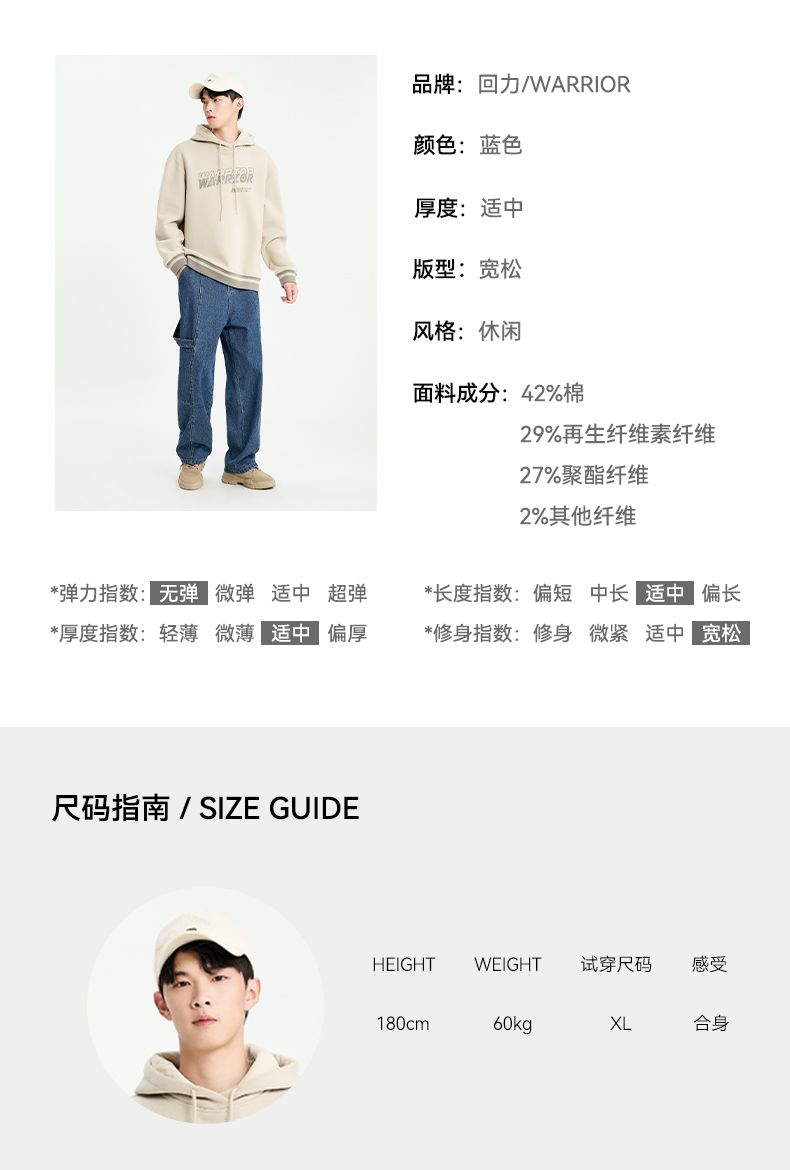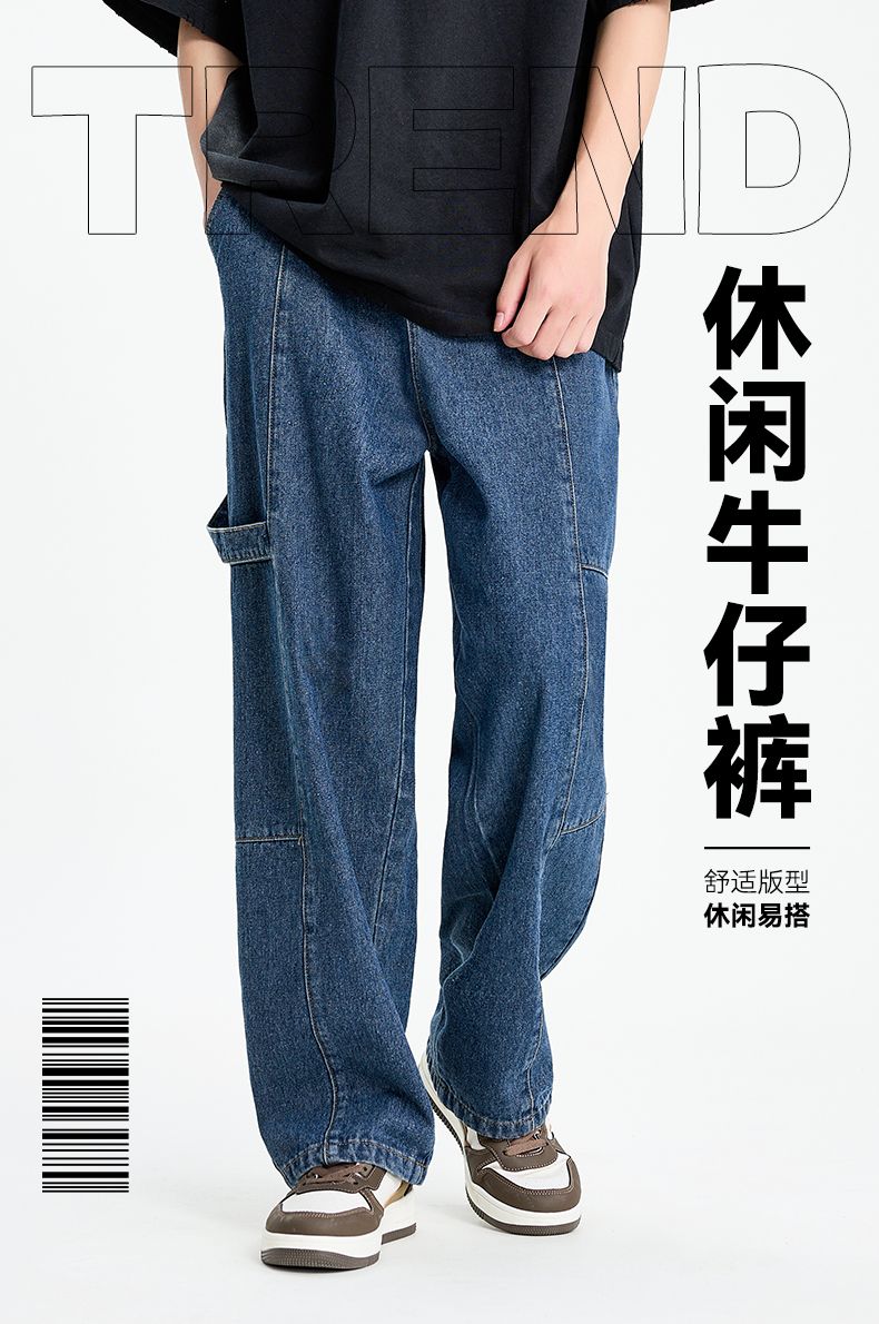 回力工装牛仔裤男士2025春秋新款美式高街百搭休闲裤宽松直筒长裤