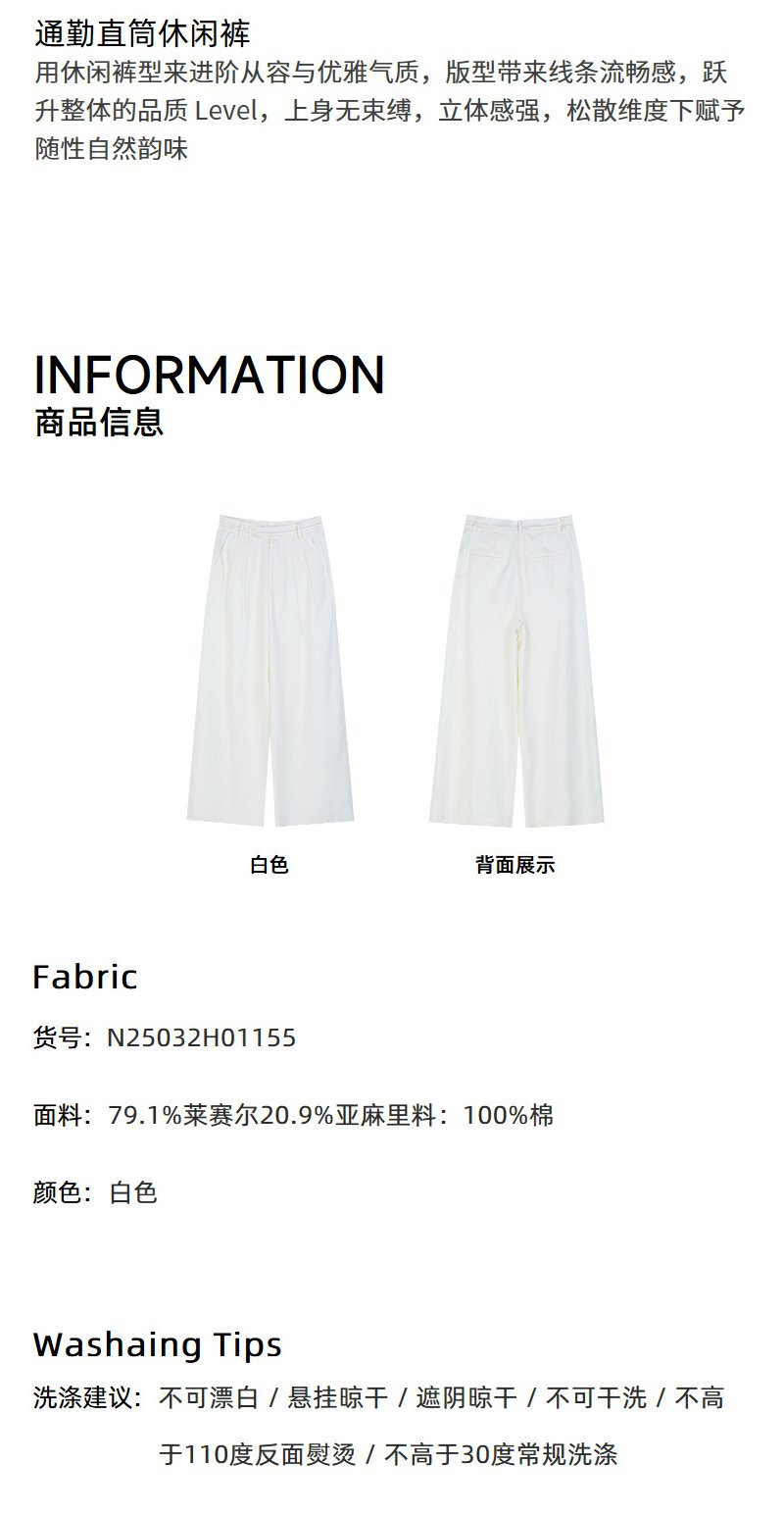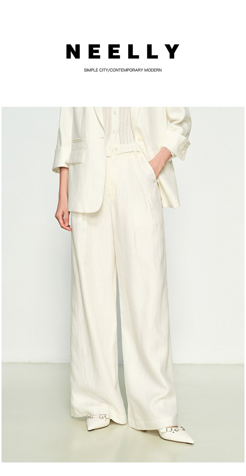 NEELLY纳俪商场同款春季新款宽松直筒时尚通勤长裤女随性休闲裤N25032H01155