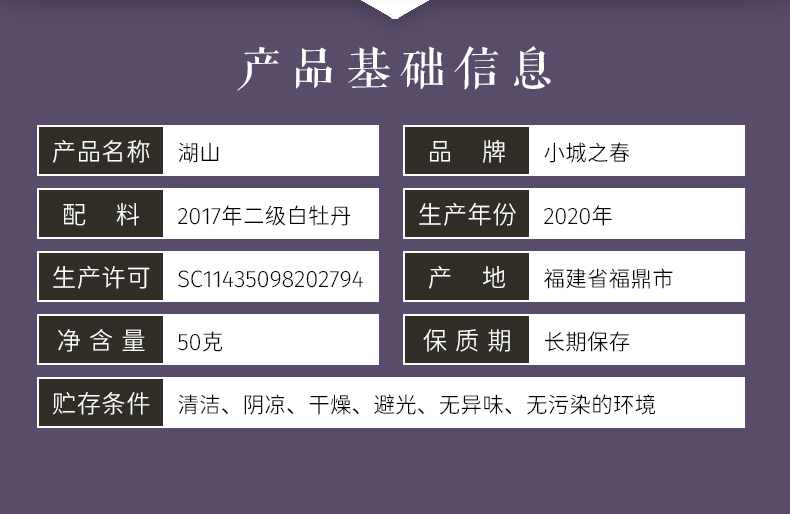 白茶丨小城之春 2017年二级白牡丹 一品湖山 50g