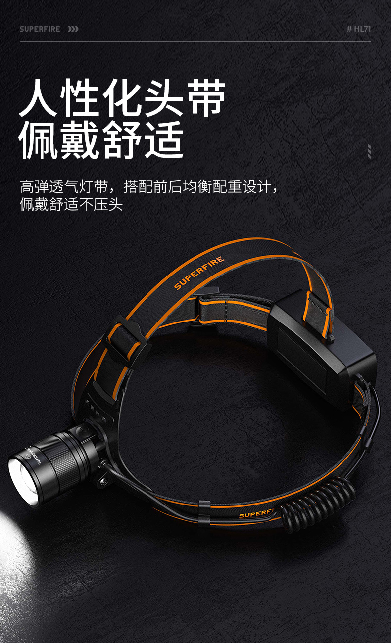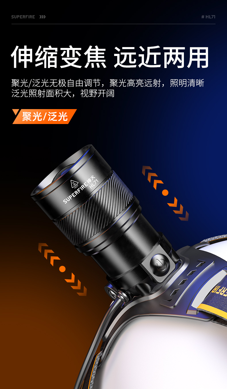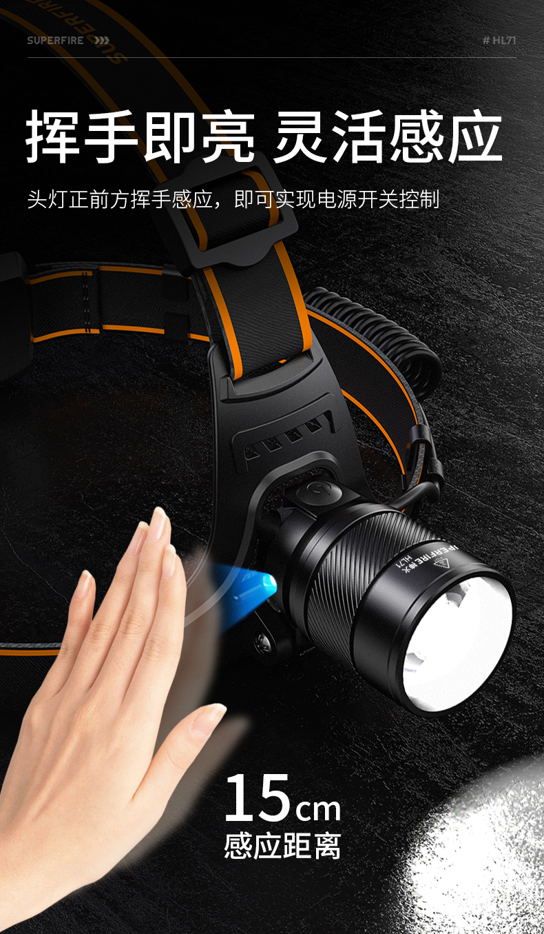 SUPERFIRE神火HL71感应头灯强光充电头戴超亮调焦户外夜钓led钓鱼灯