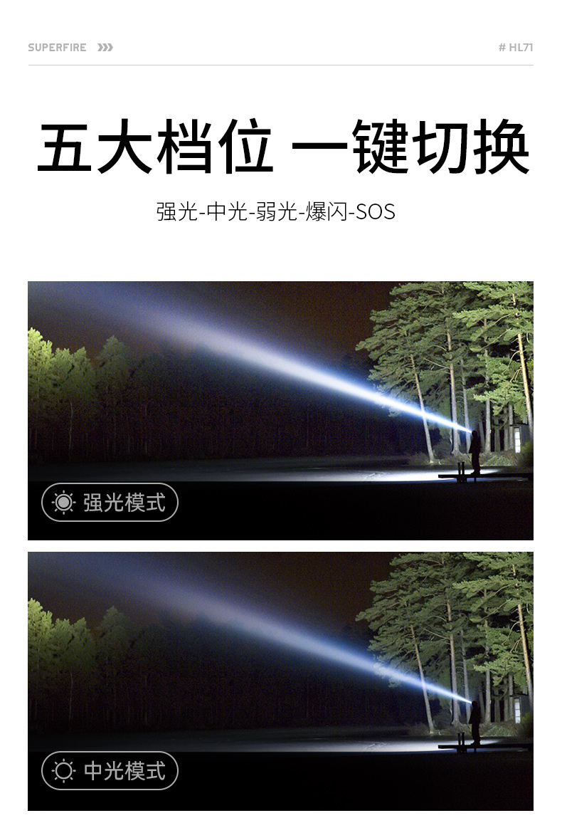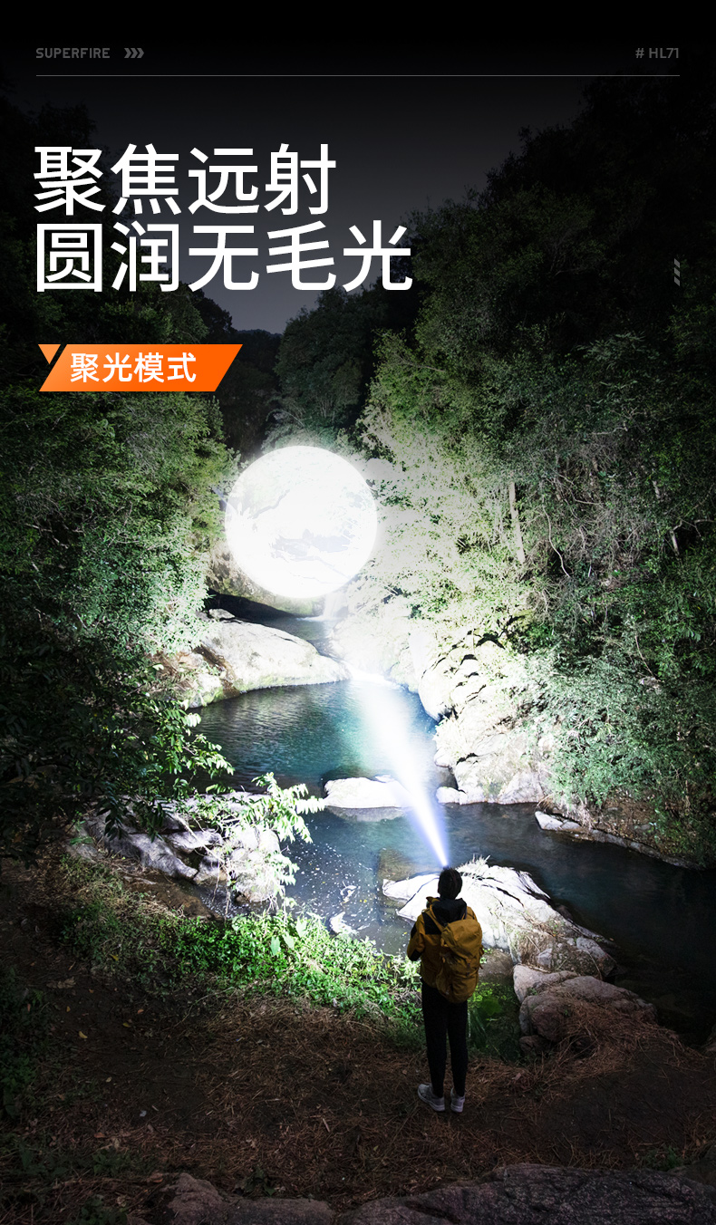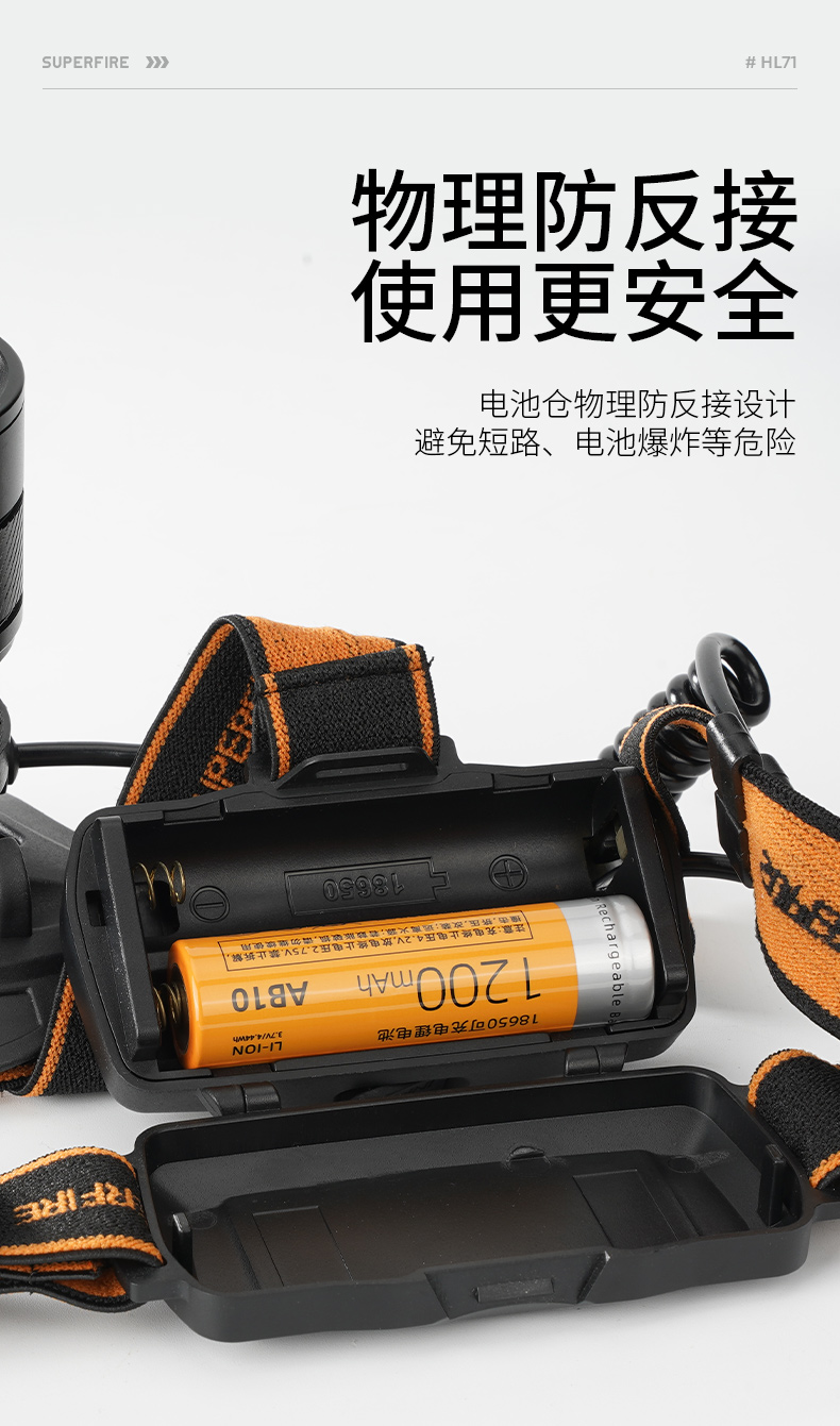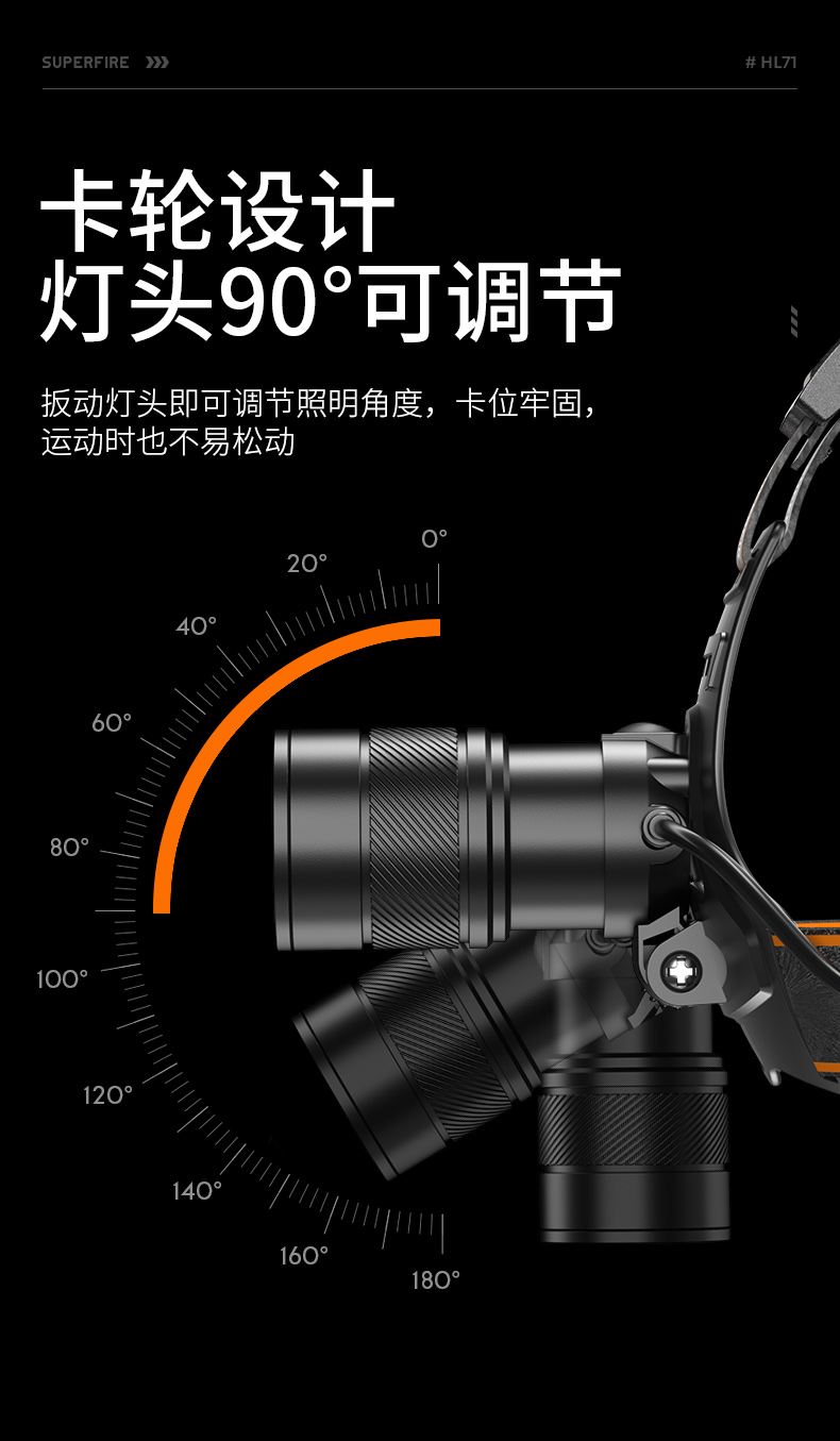 SUPERFIRE神火HL71感应头灯强光充电头戴超亮调焦户外夜钓led钓鱼灯