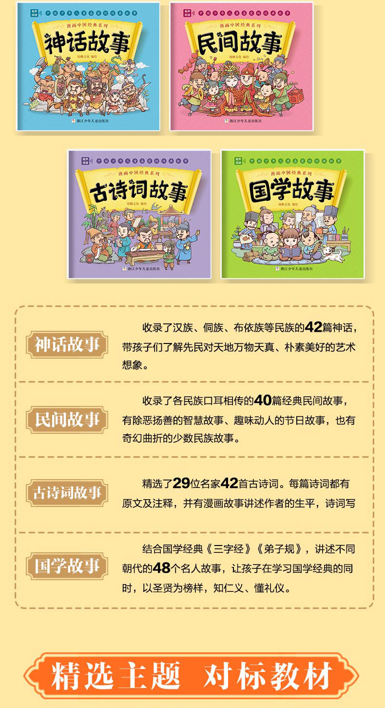 漫画中国经典系列 传统文化 (4册)(古诗词故事、国学故事、民间故事、神话故事)