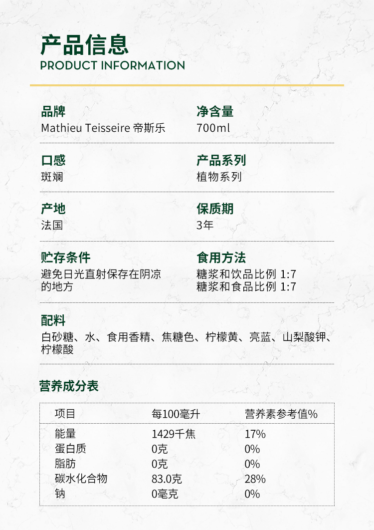 TEISSEIRE糖浆(斑斓口味) 奶茶咖啡调酒700ml/瓶