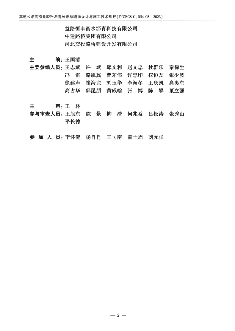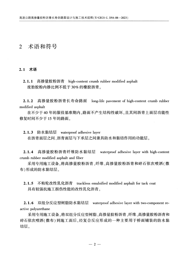 高速公路高掺量胶粉沥青长寿命路面设计与施工技术规程(T/CECS G:D54-08—2023)