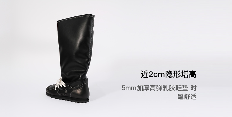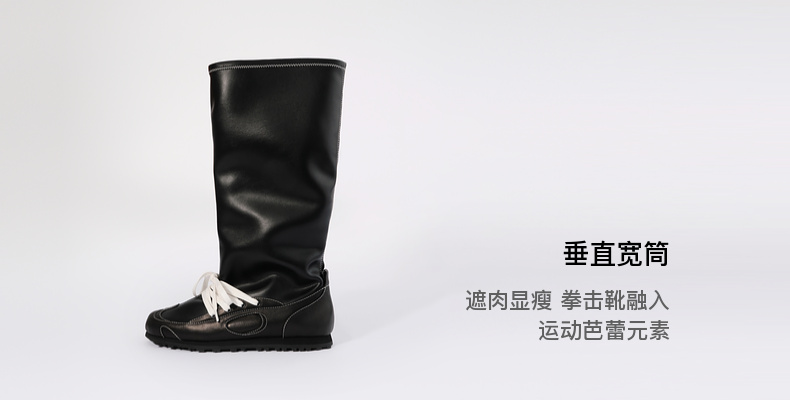 lost in echo2025秋冬新款宽筒显瘦薄底真皮一脚蹬芭蕾舞长筒靴女