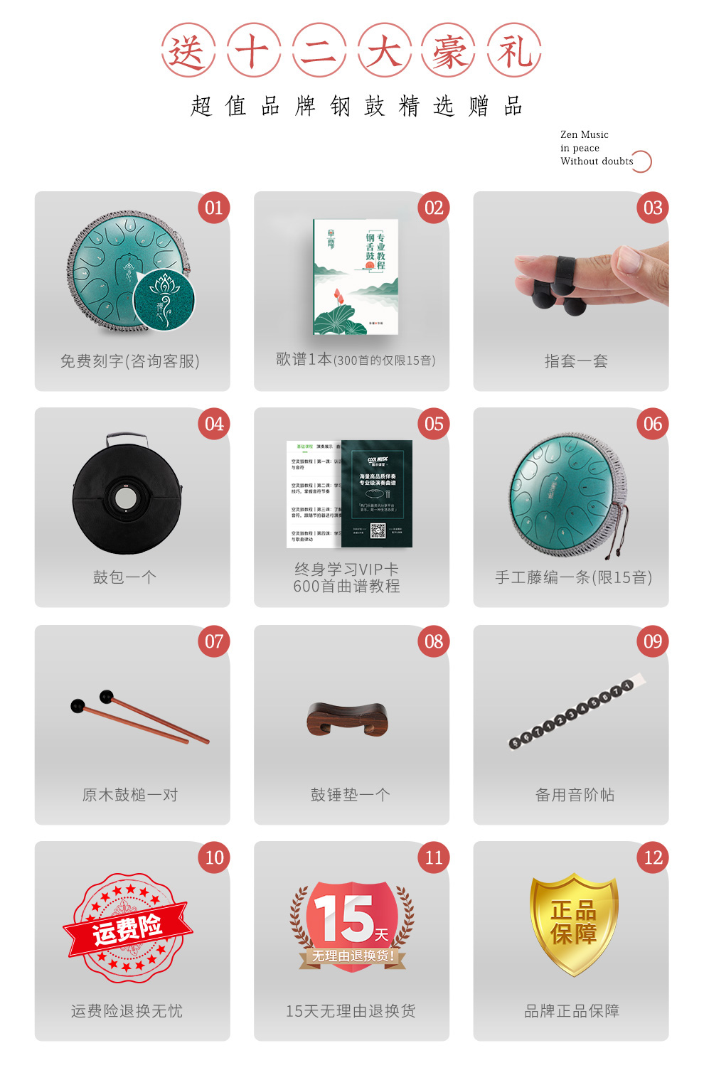 莲花空聆鼓升级款 14寸15音乐器 6种颜色可选