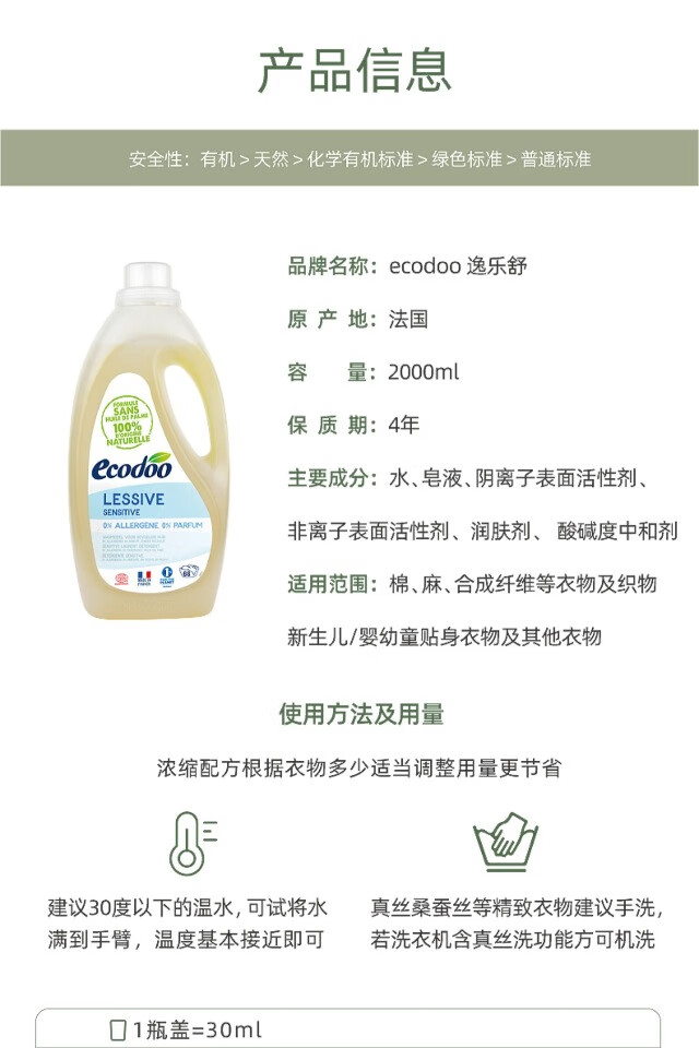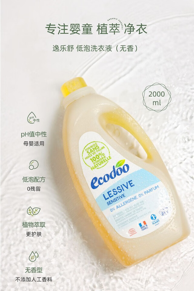 逸乐舒低泡洗衣液(无香)2L/瓶
