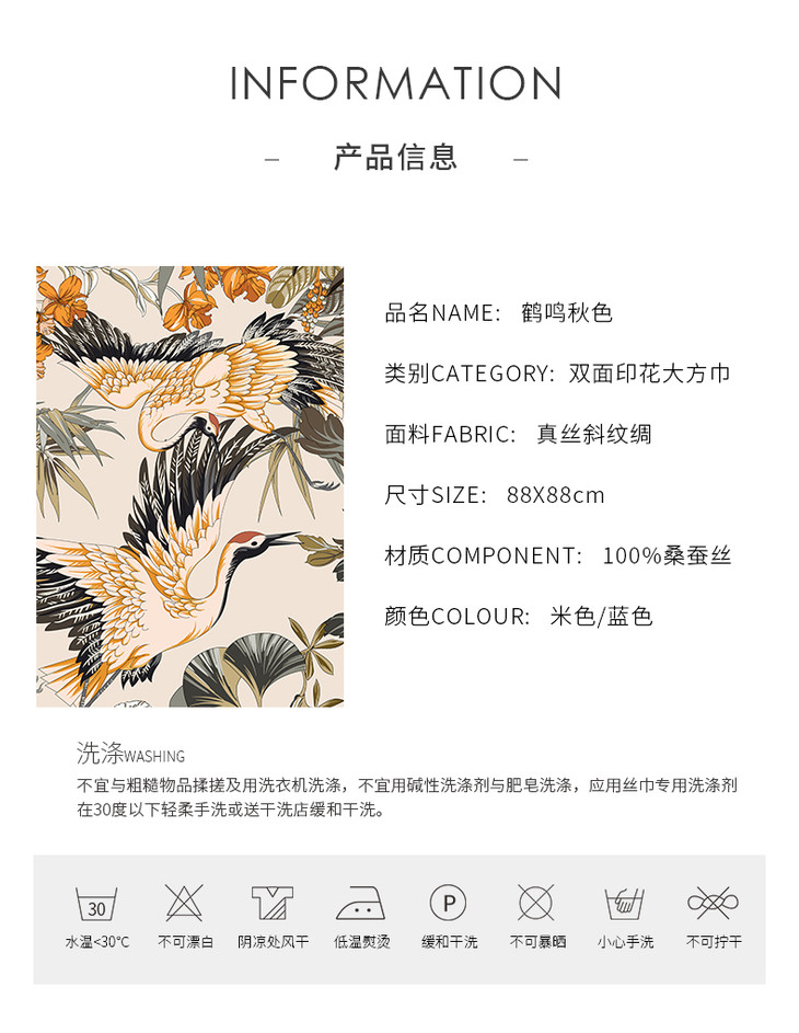 凤凰之家“传奇”63厘米双面印花真丝中方巾
