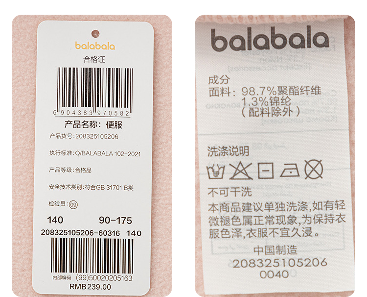 巴拉巴拉balaOne儿童外套男女童宝宝上衣2025新款秋摇粒绒防静电