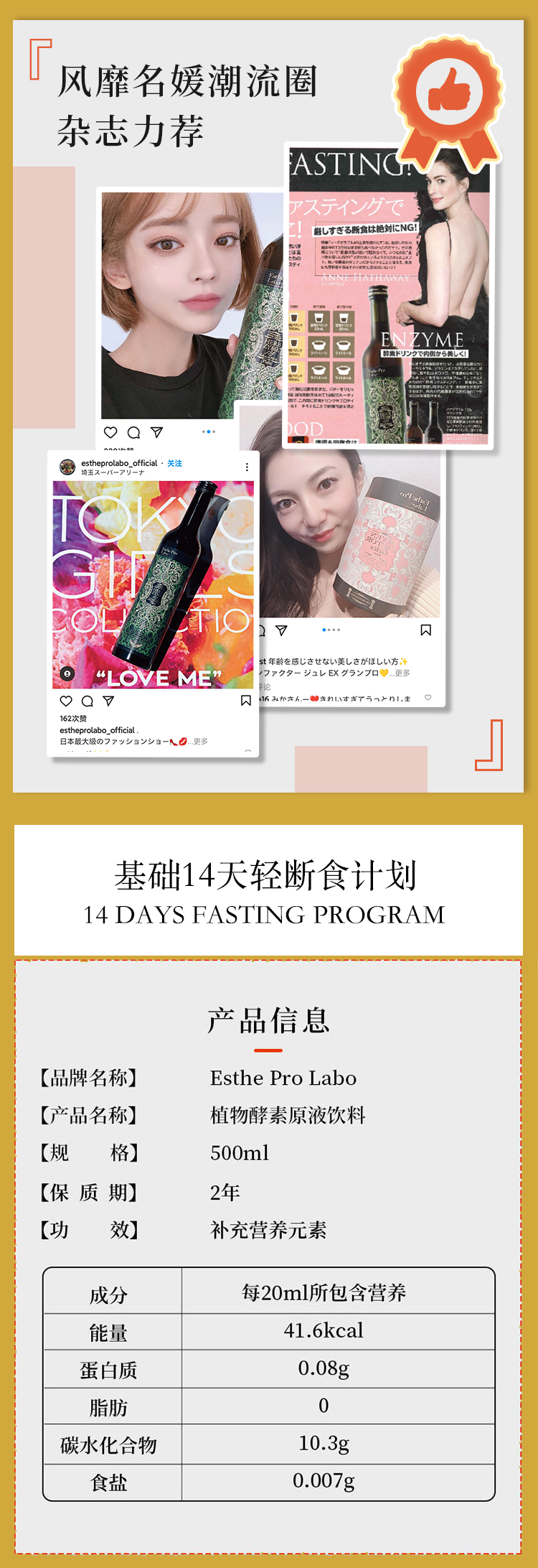 Esthe Pro Labo 植物酵素原液自然发酵饮料原味500ml 27年7月到期