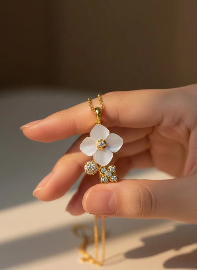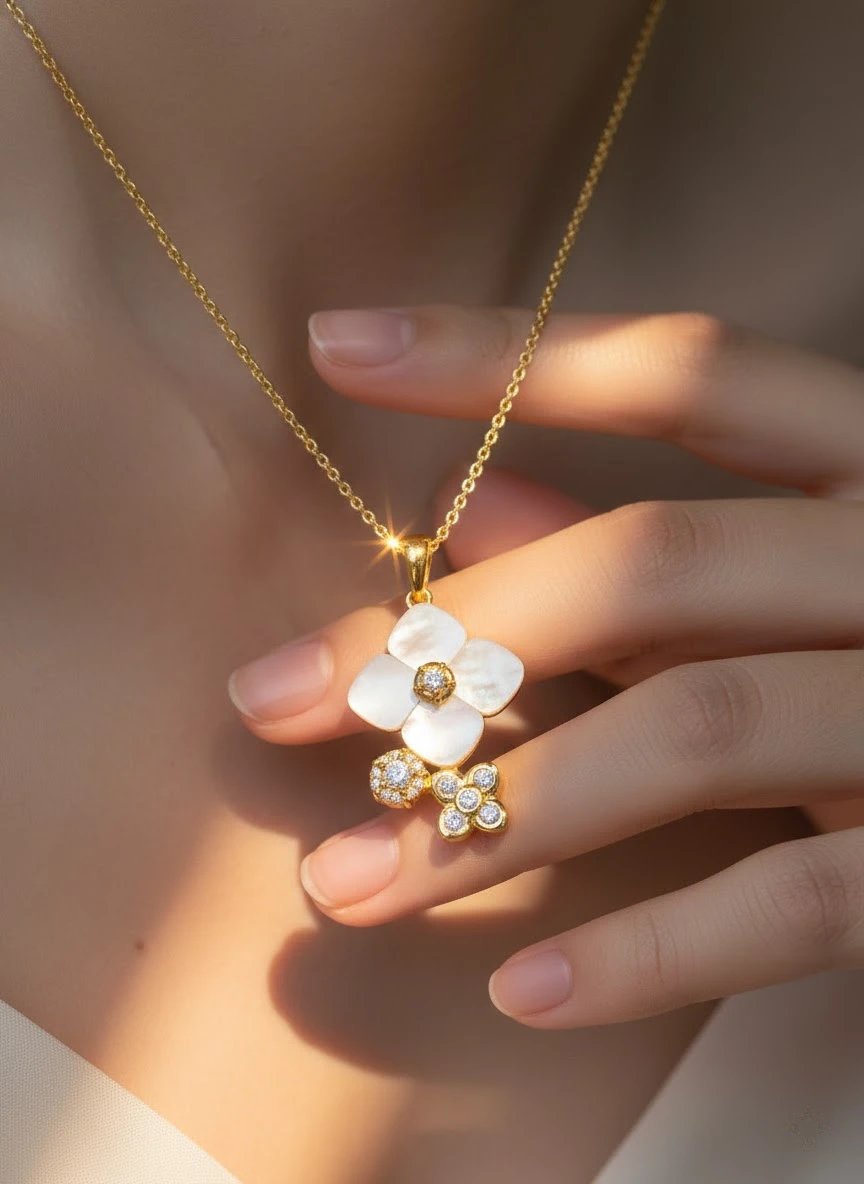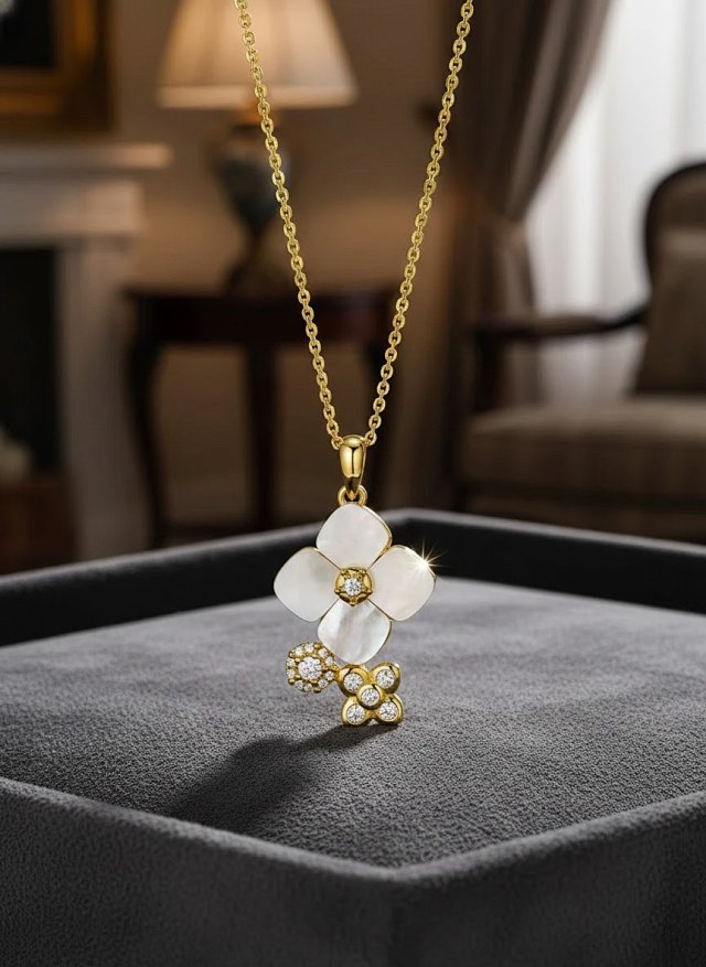 绣球圆满天然贝母项链 银镀金饰品(非质量问题 不退不换)