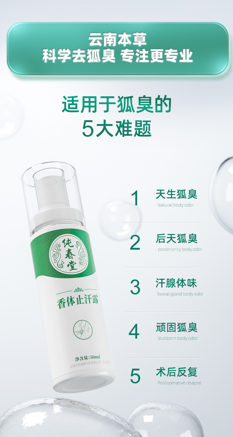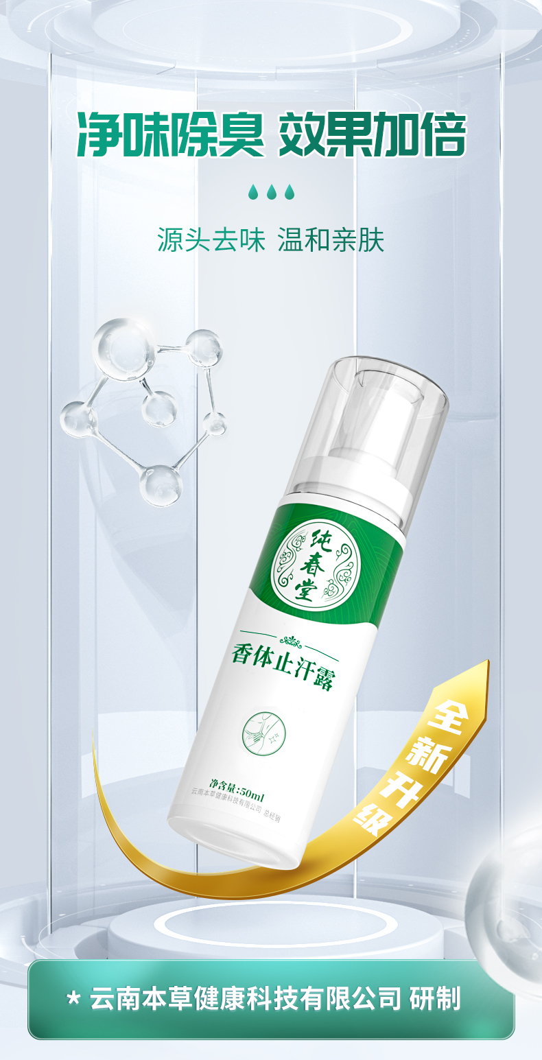 【香体止汗露】纯春堂云南本草去狐臭止汗腋臭除臭狐臭净腋下喷雾持久香体露女男士专用去味异味
