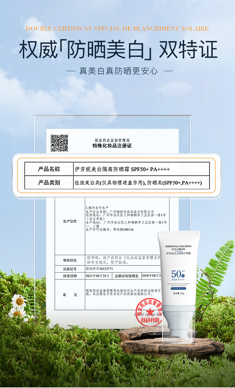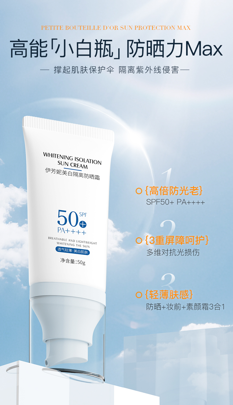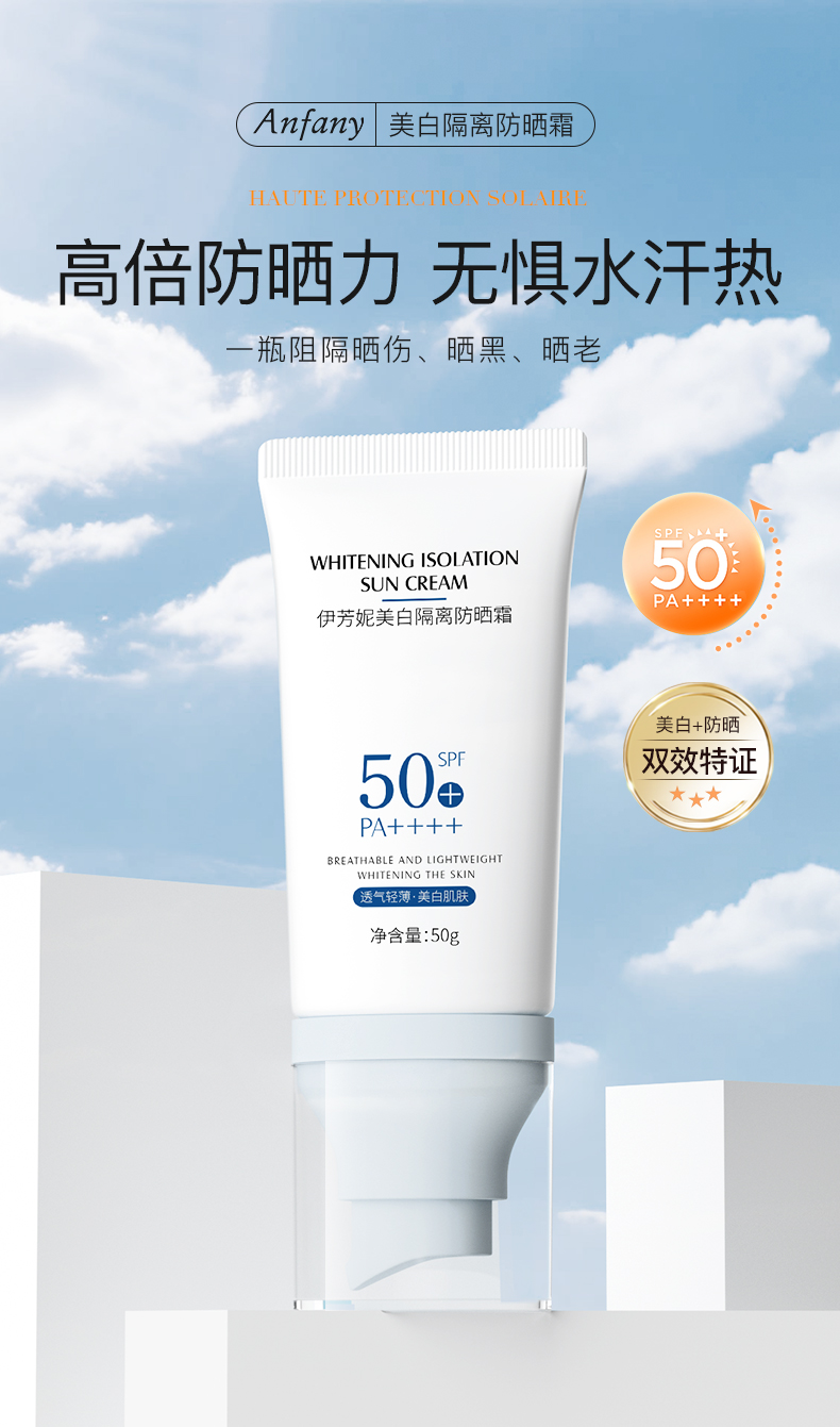 【美白隔离防晒霜】美白防晒双特证 防晒、隔离、妆前三合一 50g