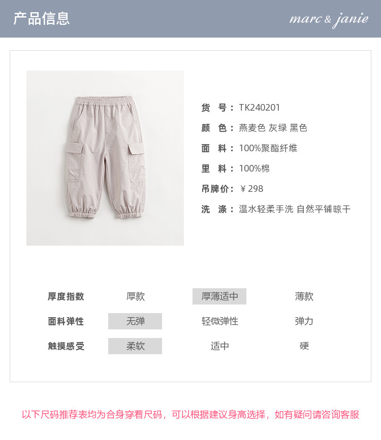 [吸湿速干]马克珍妮男童户外大口袋工装束脚裤儿童裤子春款240201