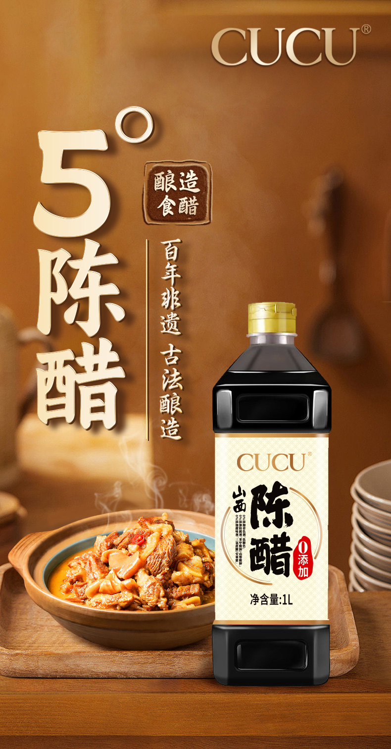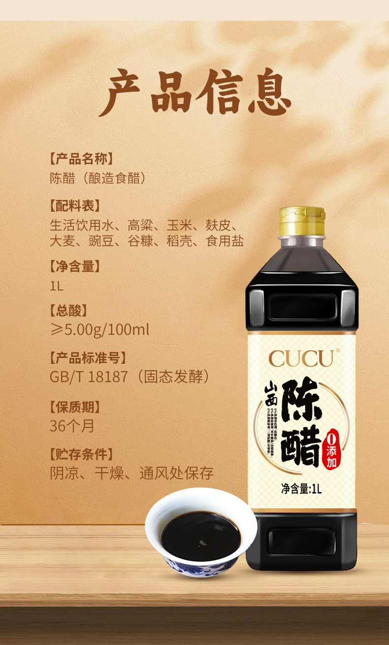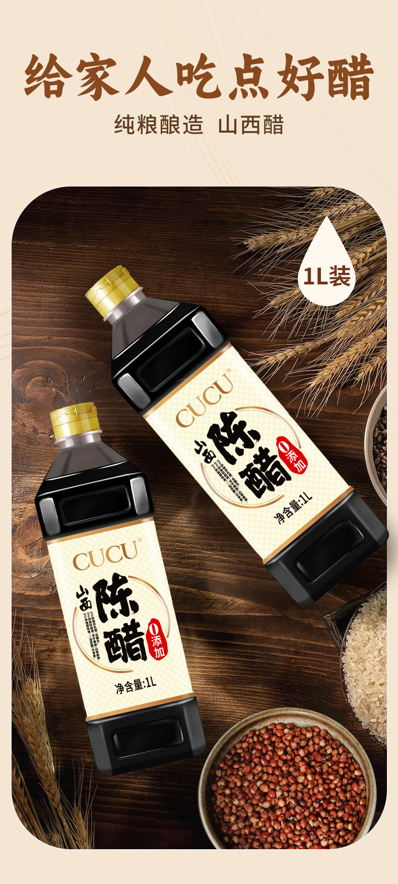 CUCU山西特产手工纯粮醋0添加1L*2瓶