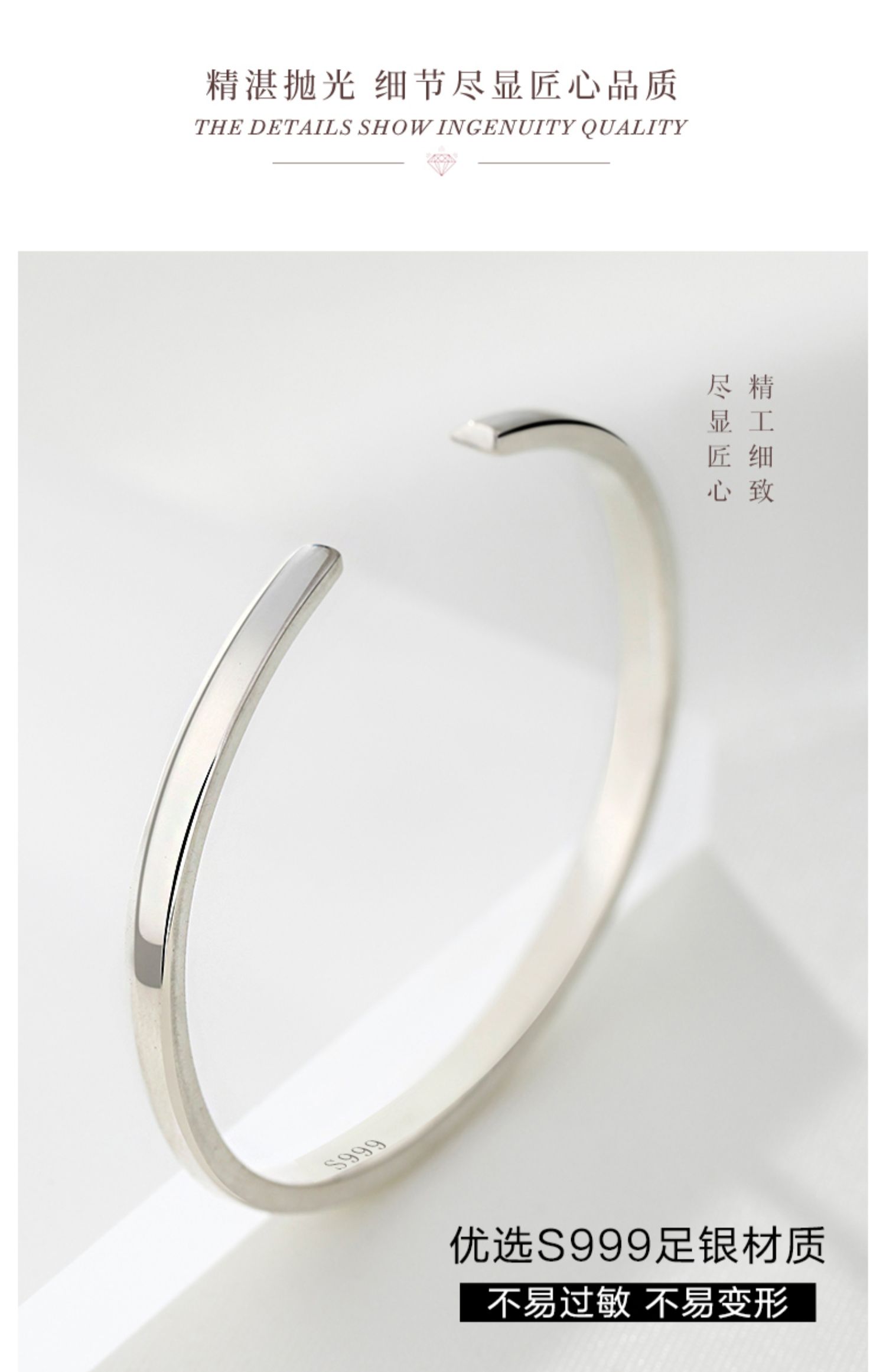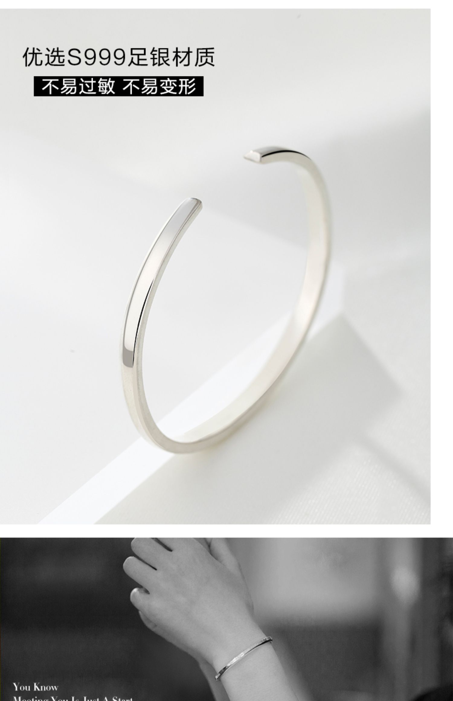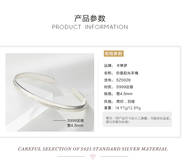 KADER卡蒂罗 甜蚀冰川 999足银 情侣对戒小众素圈开口可调节对戒 简约百搭极简风配饰 纪念日礼物礼盒 送女友