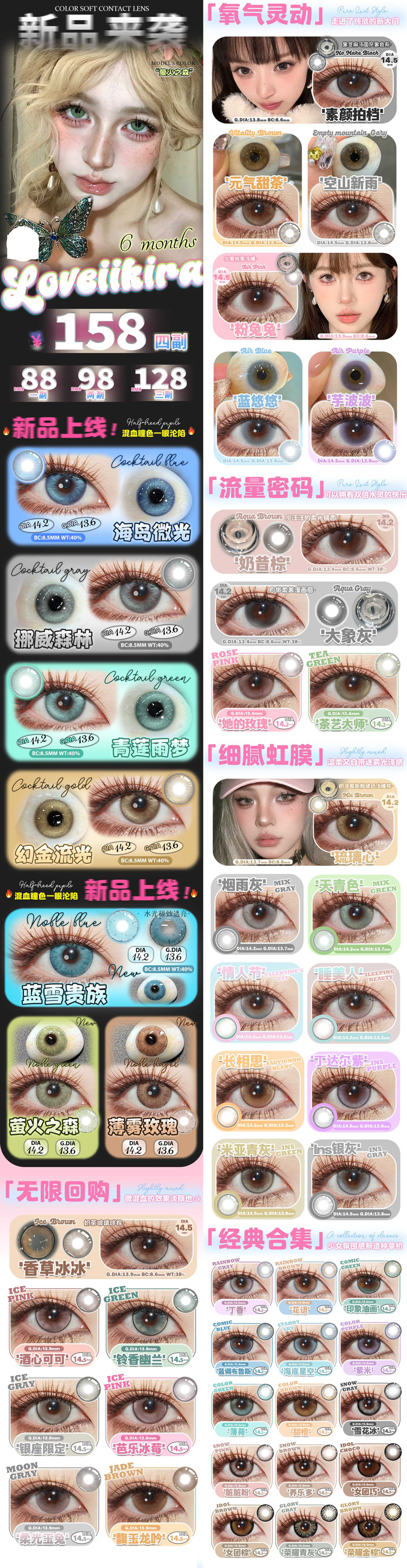loveiikira 日抛 活动合集【黑珠珠/天蓝色/白月光/水嘟嘟/天青色/烟雨灰/琉璃心/大地精灵/夜神/海王/布莱垦棕/圣托里尼/伦敦雾】