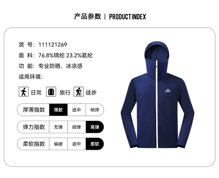 伯希和2021春夏新款冰丝防晒服 男防紫外线透气超薄透气皮肤风衣11121269