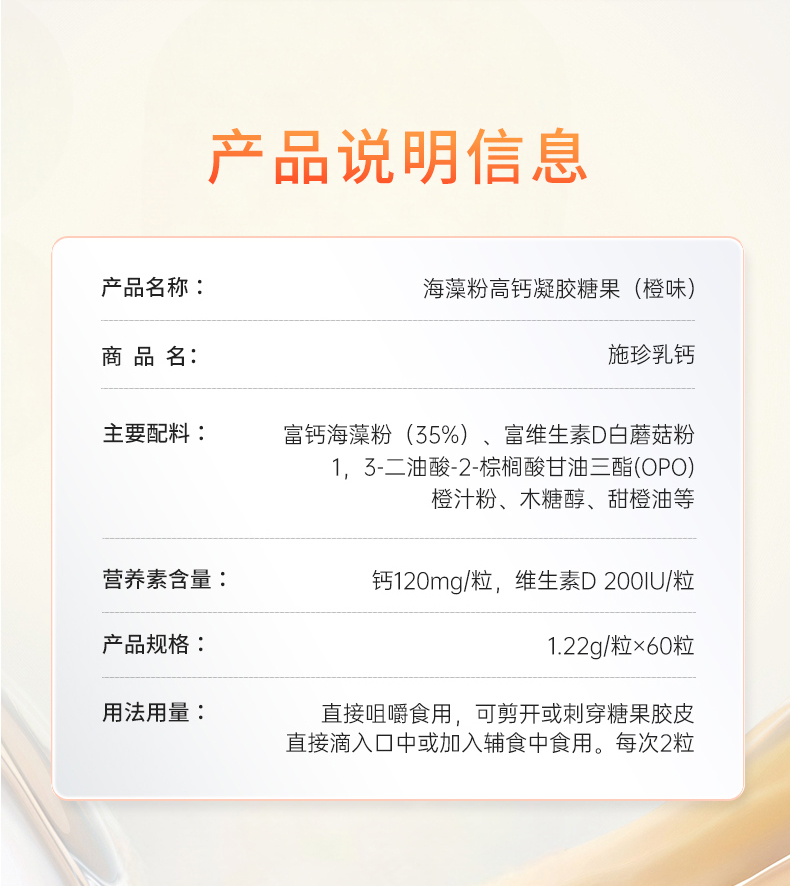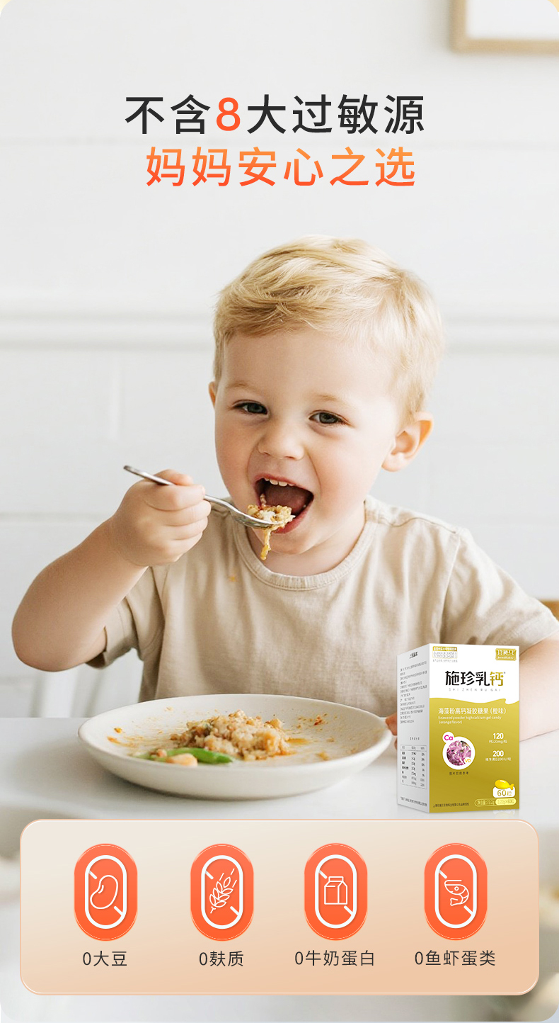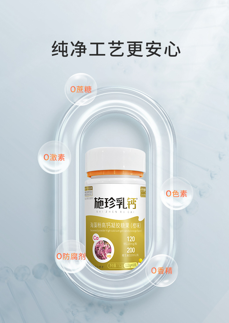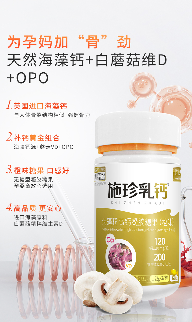 施珍乳钙无糖型海藻有机钙蘑菇维生素D孕妇乳母婴童高吸收不伤胃