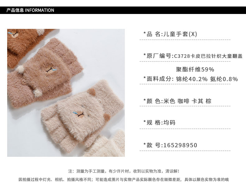 C3728卡皮巴拉针织大童翻盖儿童手套-纪念日百货门店同款165298950