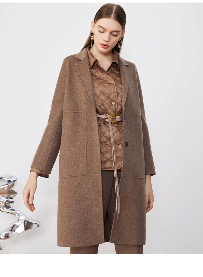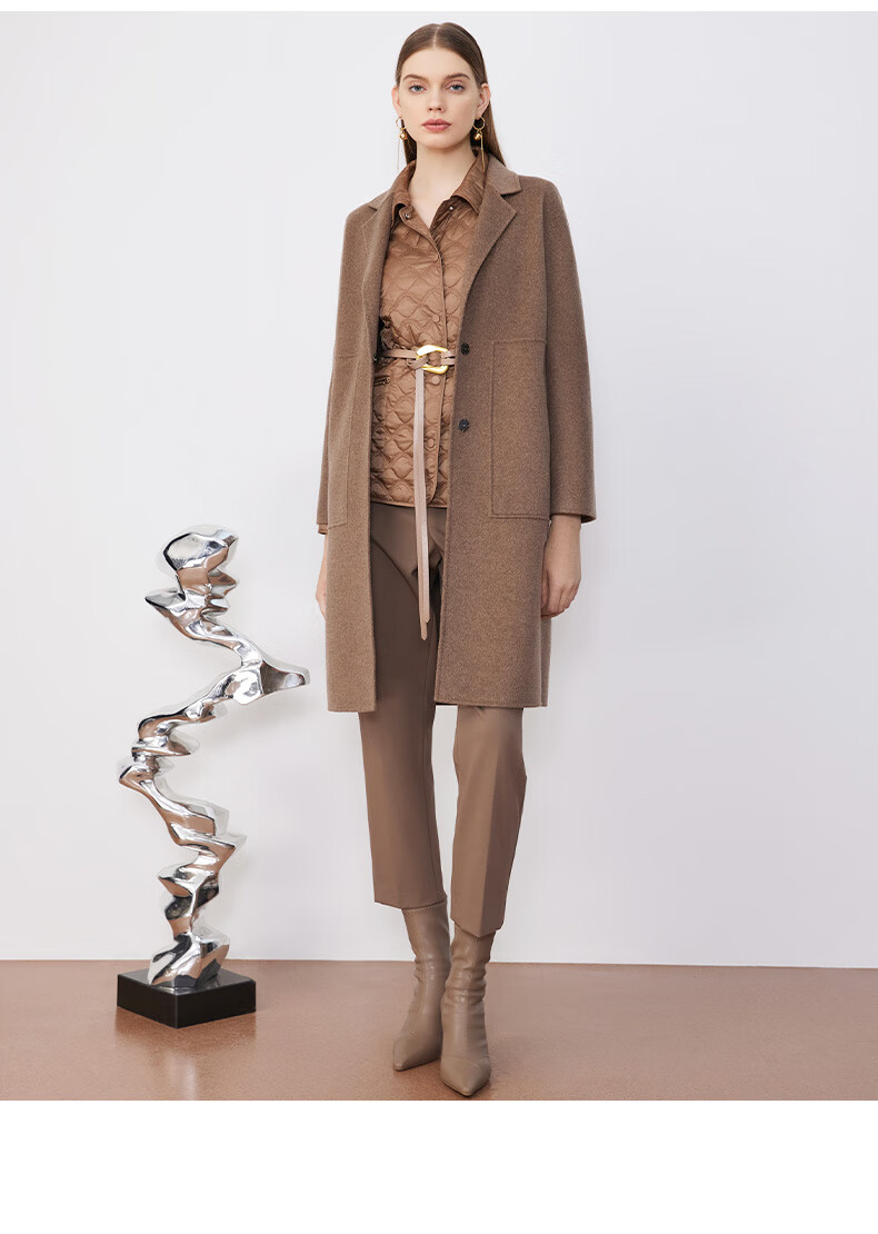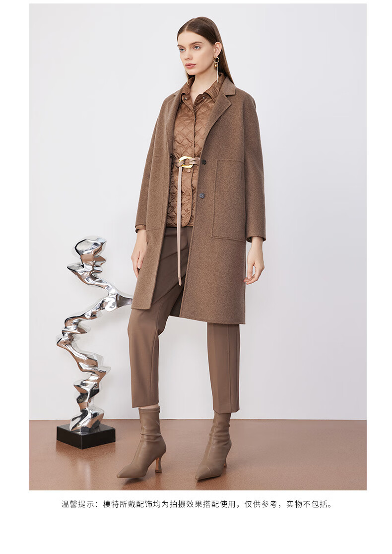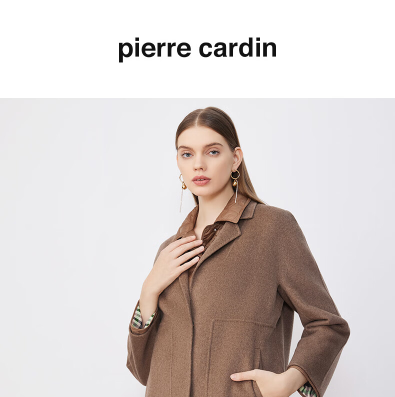 皮尔卡丹女装毛呢外套秋冬季咖色法式呢大衣保暖外套P3440C3401K0