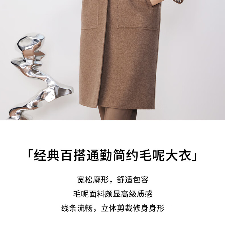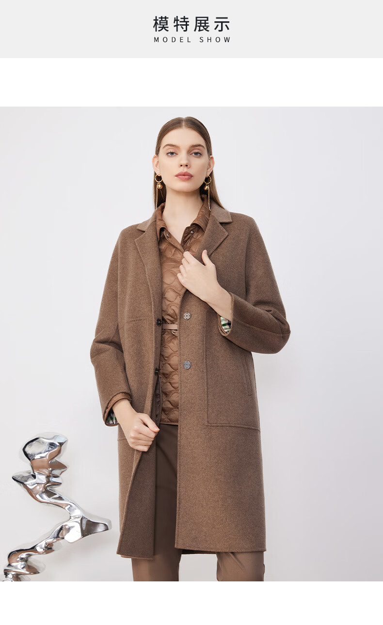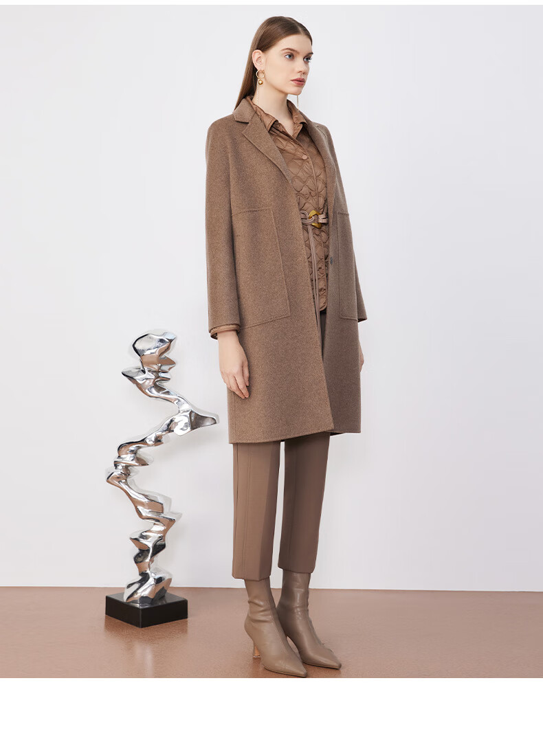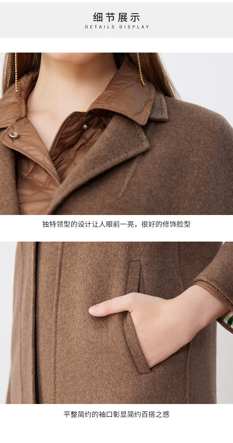 皮尔卡丹女装毛呢外套秋冬季咖色法式呢大衣保暖外套P3440C3401K0