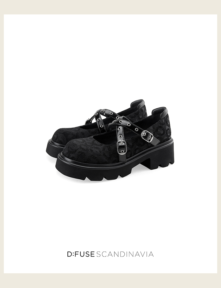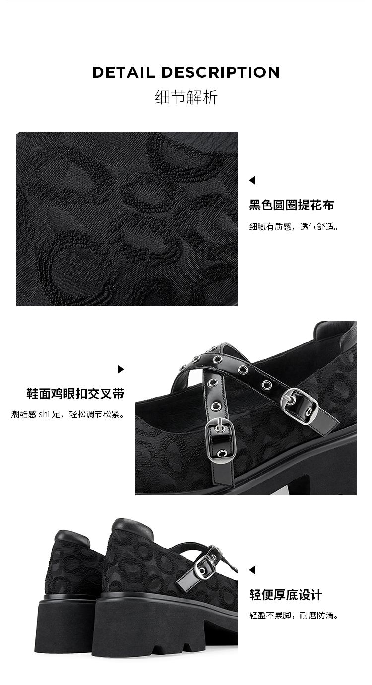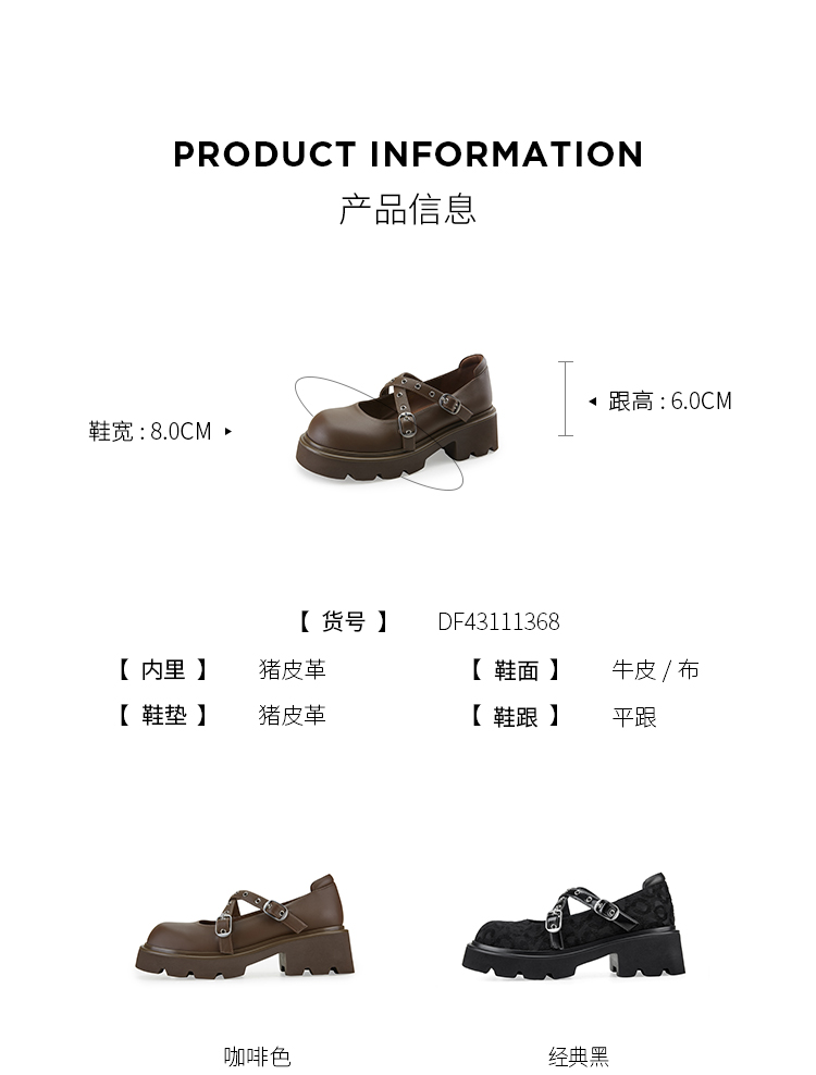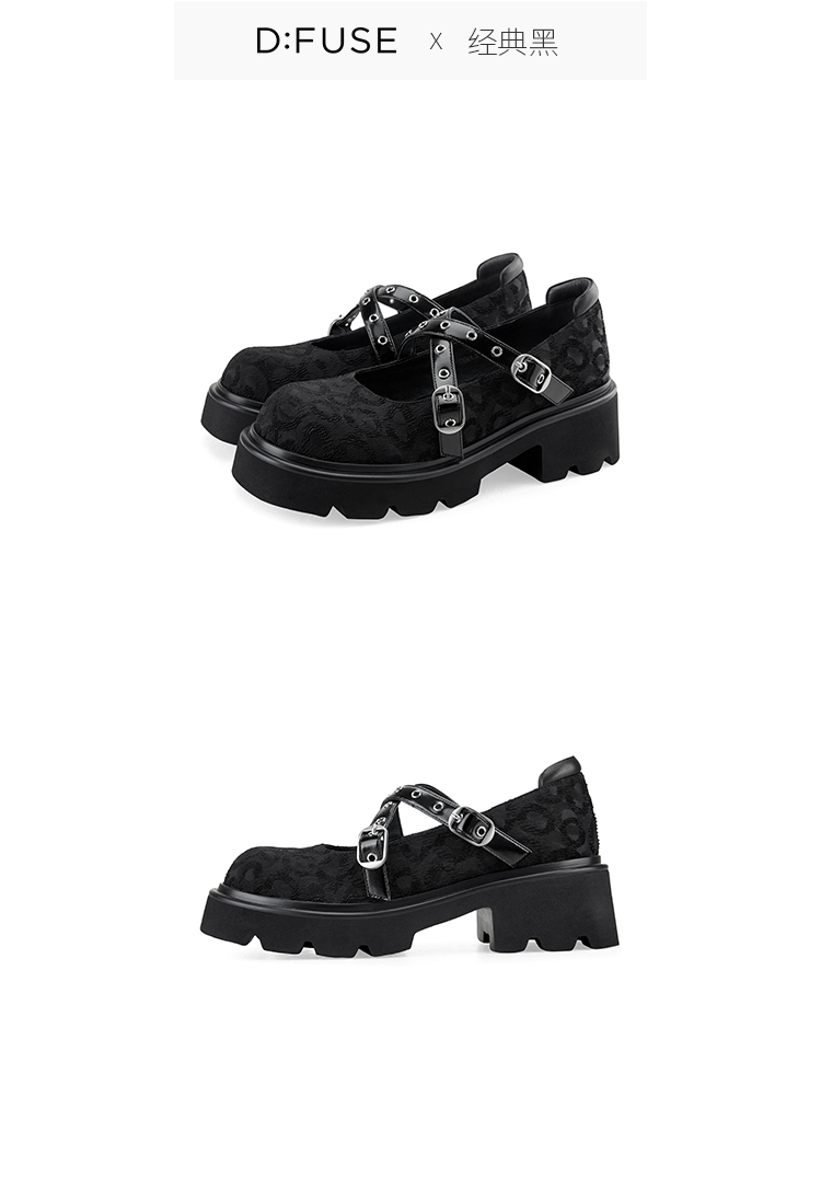 D:FUSE迪芙斯2024年秋季新款时尚圆头鞋甜酷交叉带玛丽珍单鞋增高厚底鞋DF43111368