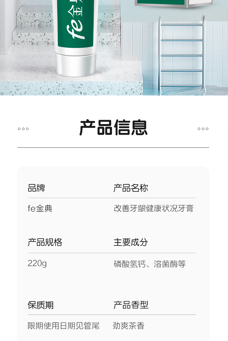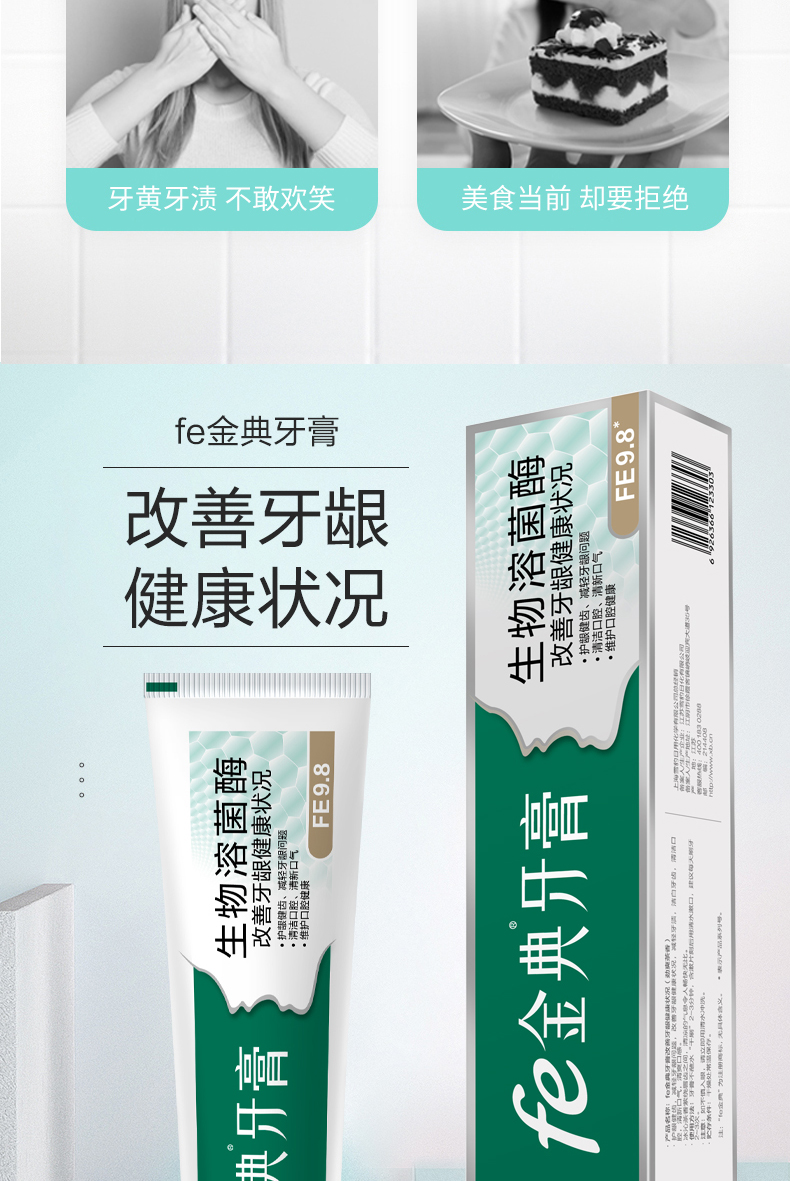 【双十二·拍一发N】fe金典生物溶菌酶牙膏改善牙龈状况套装220g fe9.8(劲爽茶香)