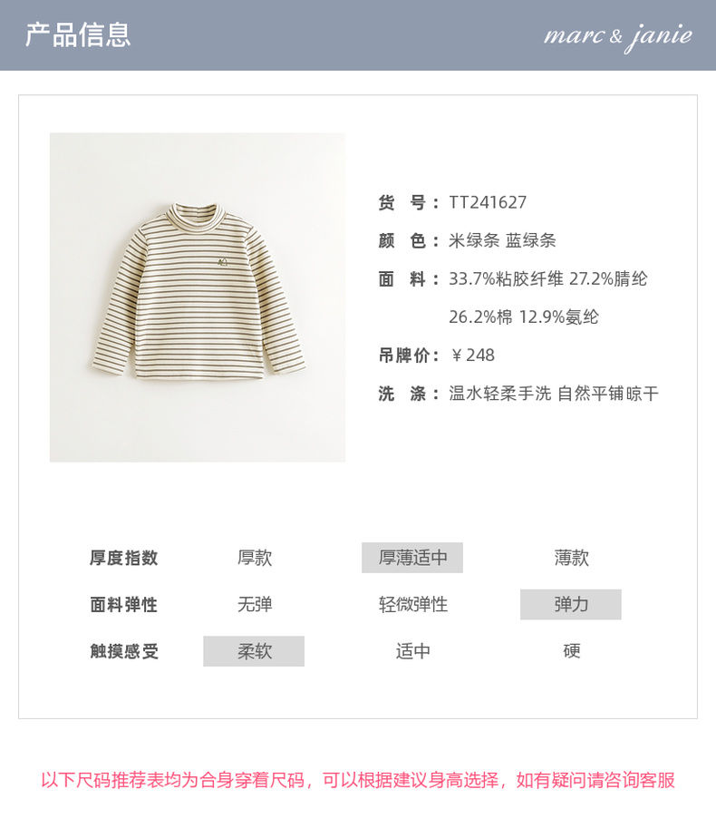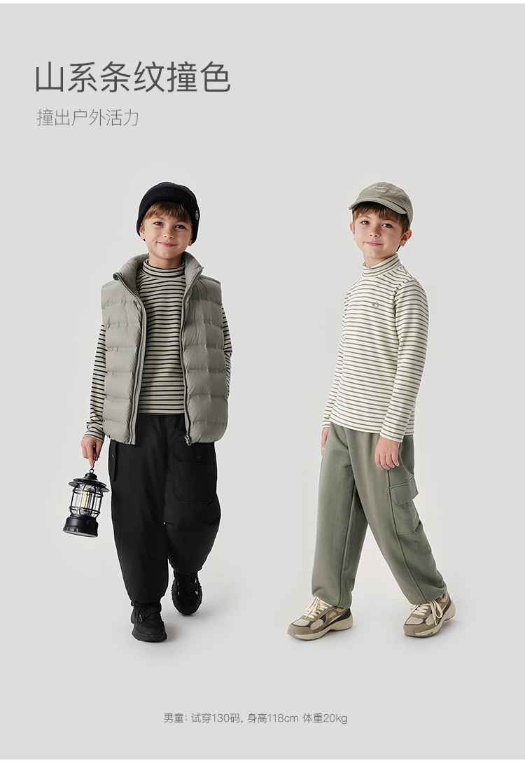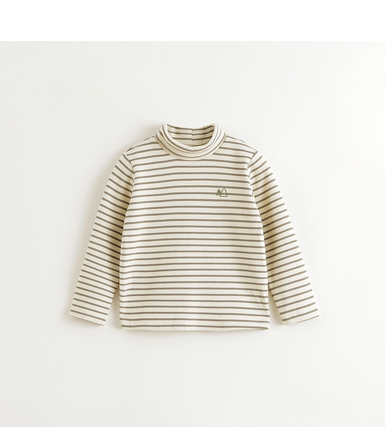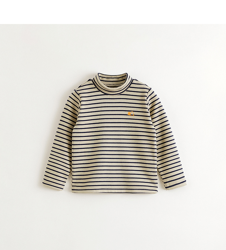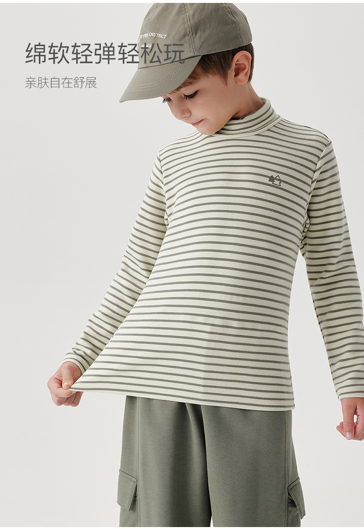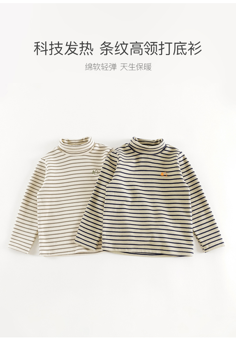 [科技发热]马克珍妮男童山系条纹高领打底衫儿童T恤秋冬装241627
