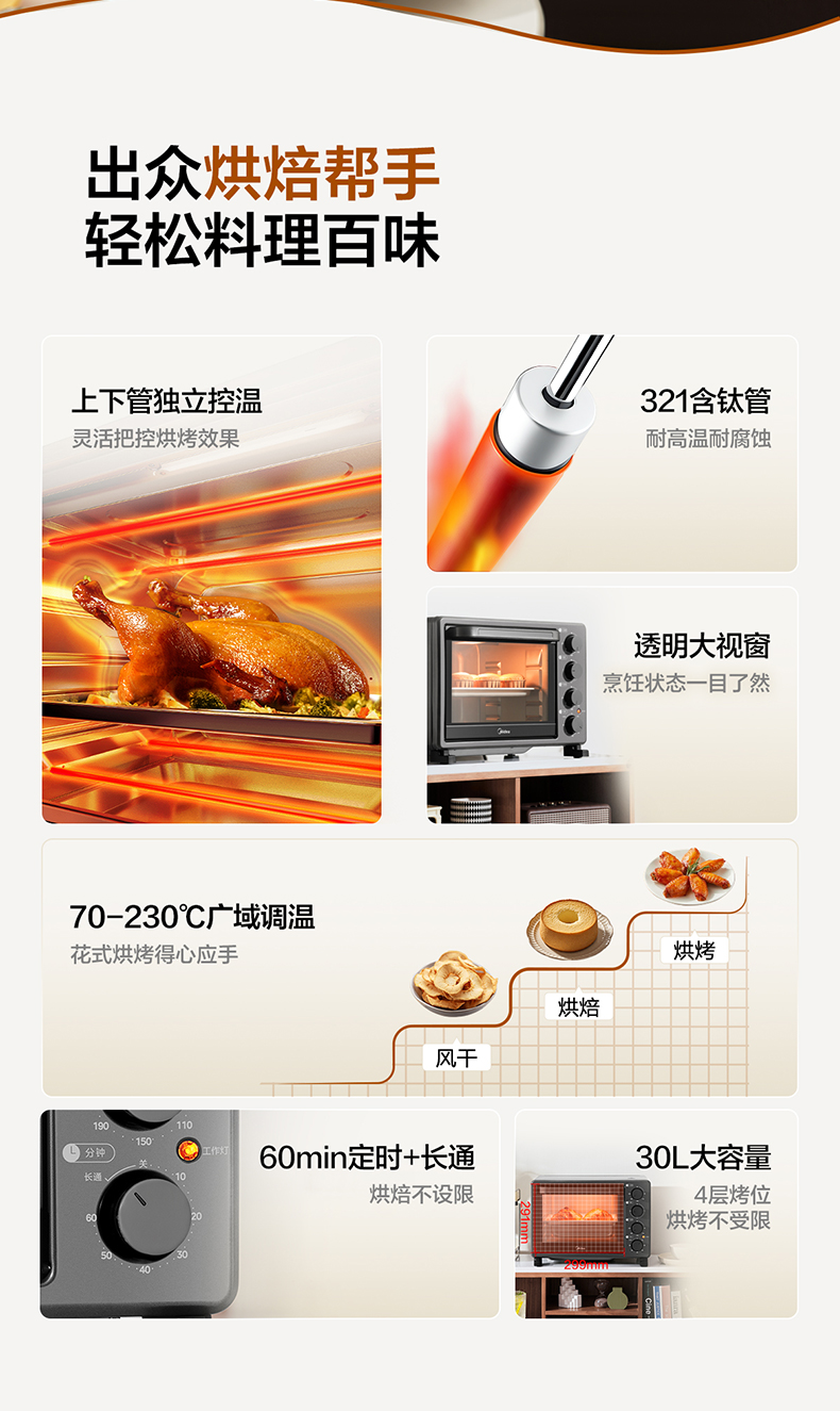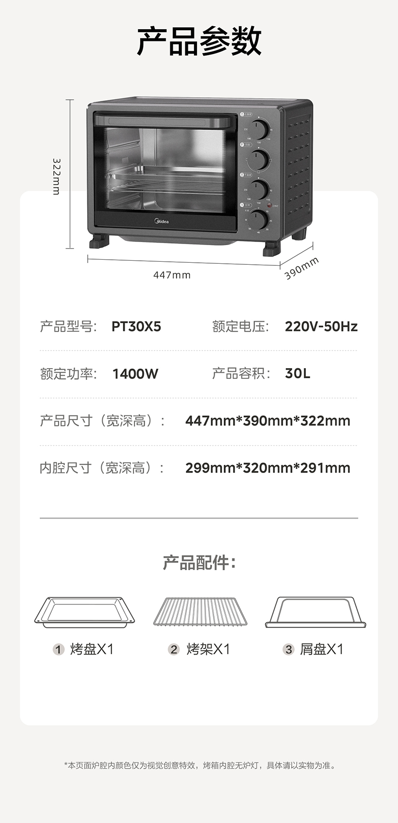 美的电烤箱PT30X5【分仓直发,72小时发货,周末节假日不发货】