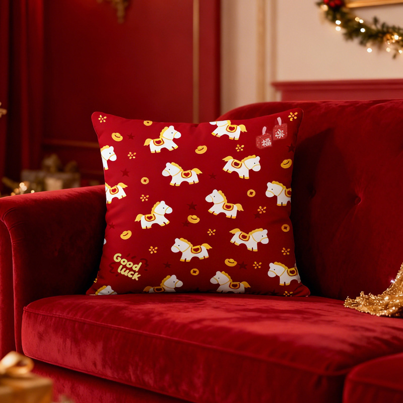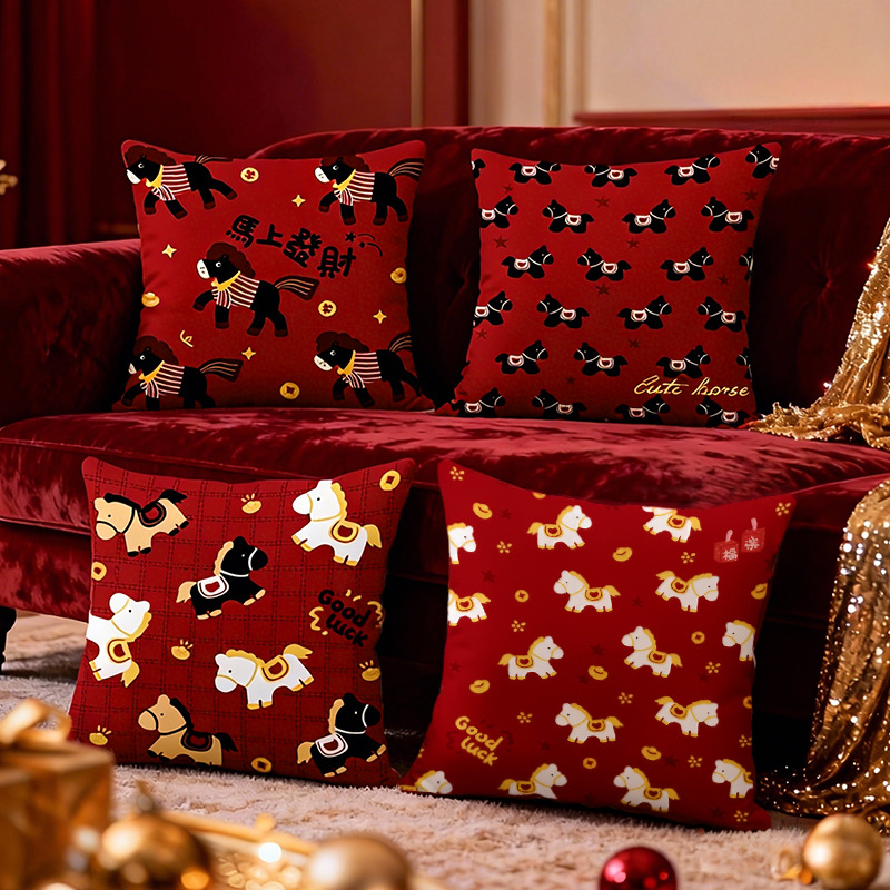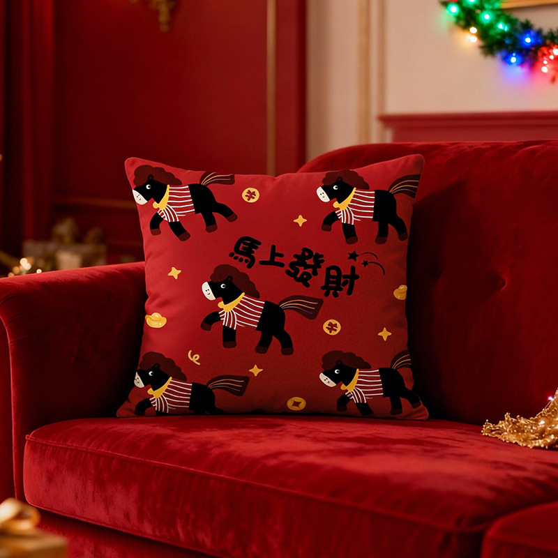 【超高级的双面马年抱枕】新年卡通可爱双面图案绒布抱枕套 生肖马年靠枕客厅 沙发软萌装饰枕玩偶